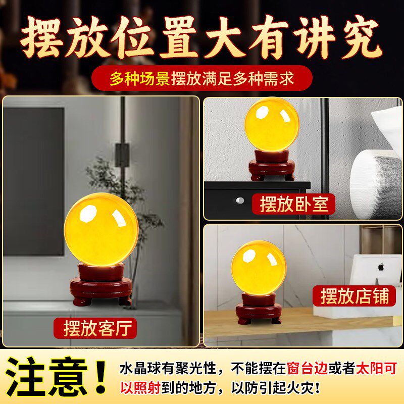 黄水晶球摆件招财入户玄关客厅酒柜摆饰工艺品办S公室白色开业礼