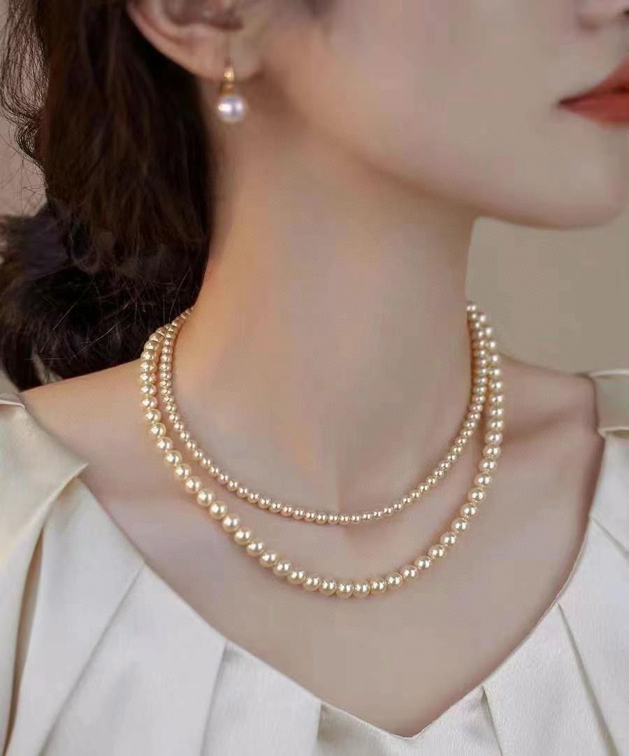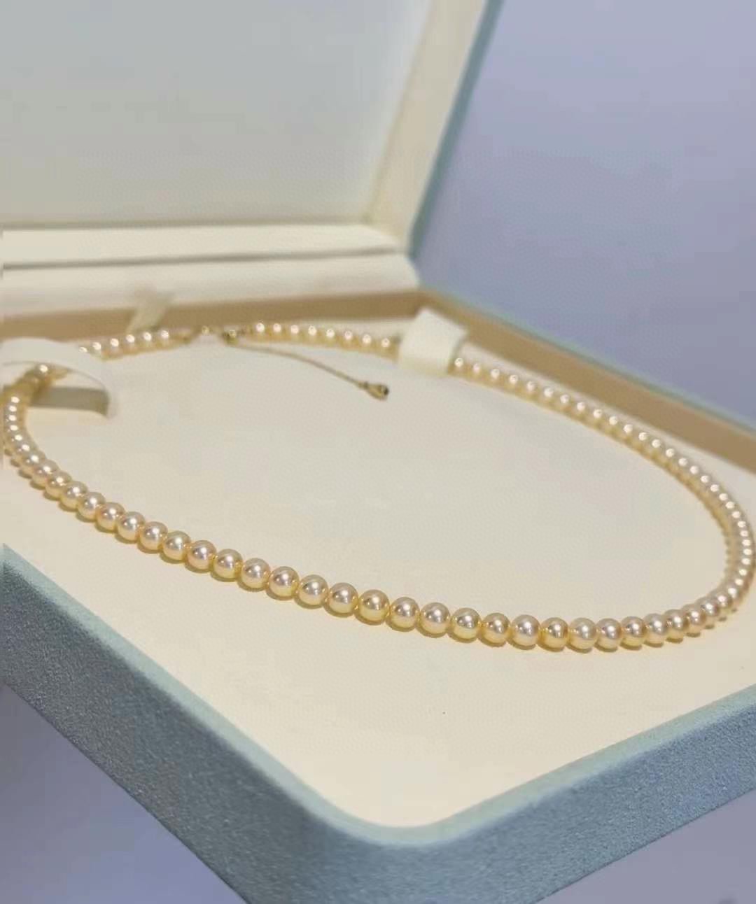 奶油金项链4~5mm正圆强光基本无瑕上身真的绝 裸链40cm