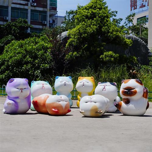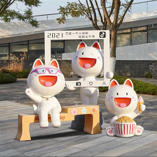 户外卡通招财猫坐凳玻璃钢摆件网红打卡拍照雕塑商场门店开业装饰