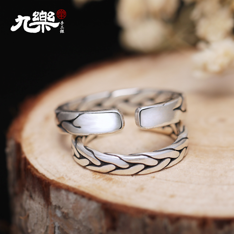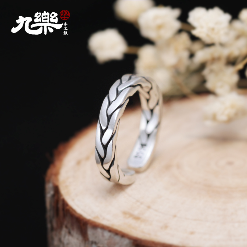 九乐999纯银戒指女男手工编织麻花复古开口个性情侣对戒送女友礼