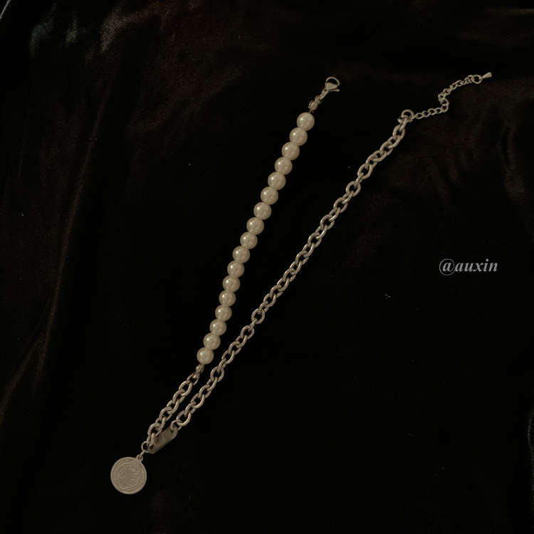 wumulle 甜咸珍珠圆牌项链80s 昭和风味复古女吊坠 钛钢男女自制!