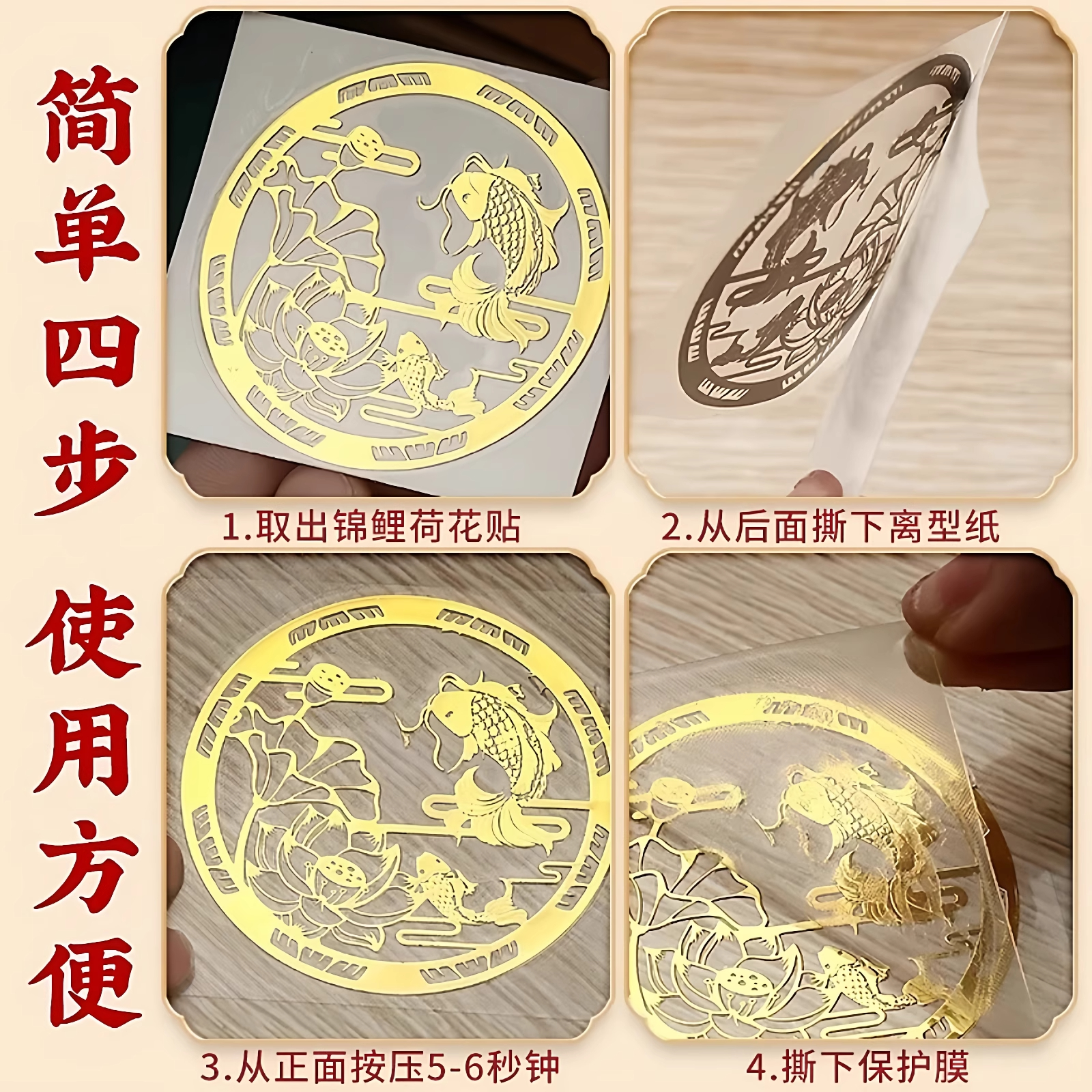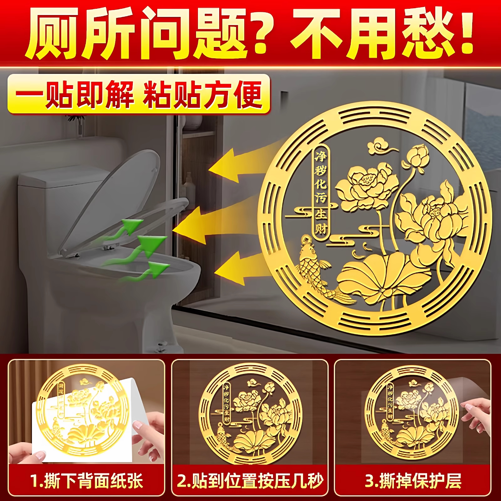荷花鲤鱼净秽图卫生间莲花贴纸好运连连厕所荷花锦鲤金属贴画鞋柜