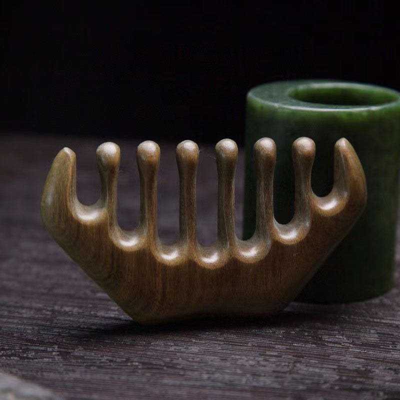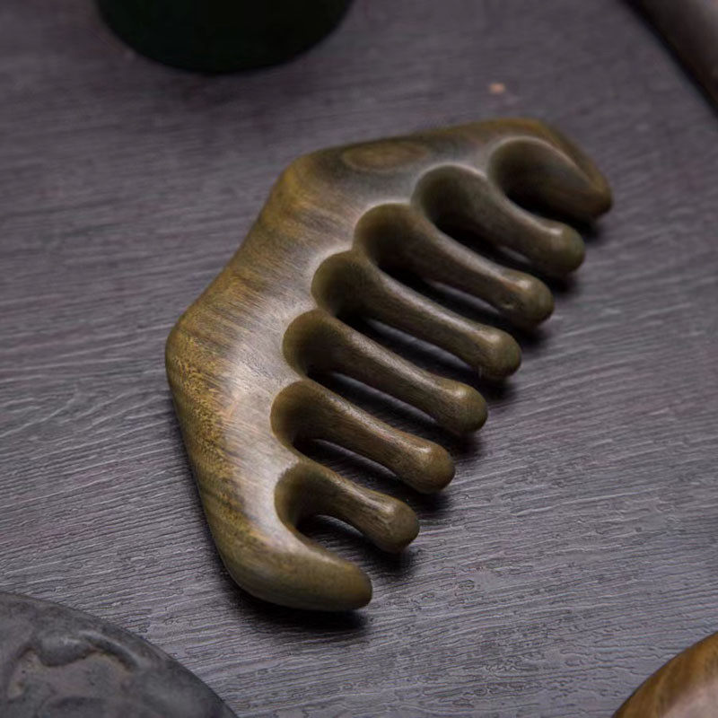 绿檀木拱形按摩梳大宽齿卷发梳子头部经络疏通防静电木梳子