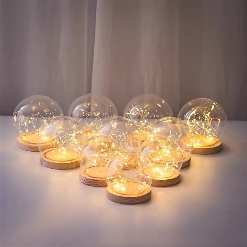 郁金香小夜灯 圆形玻璃罩创意客厅桌面展示罩玩偶防X尘罩侧面开关