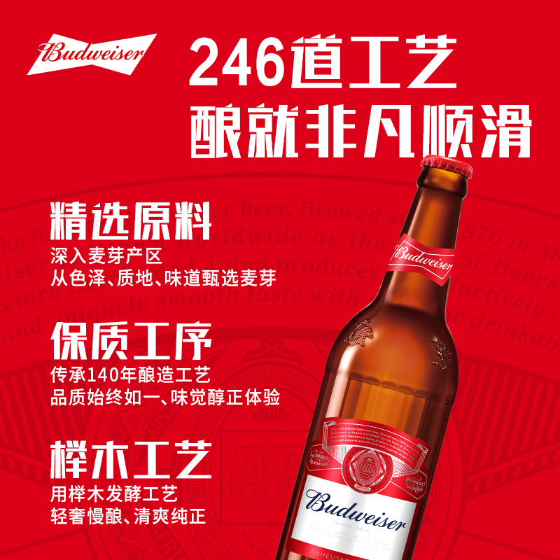 Budweiser/百威美式拉格啤酒600ml*12瓶经典大红瓶9.7°P整箱批发