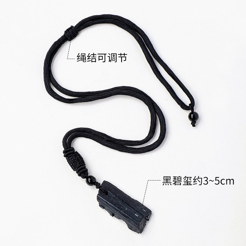 跨境热销天然水晶黑碧玺原石吊坠黑色电气石简约百搭毛衣链