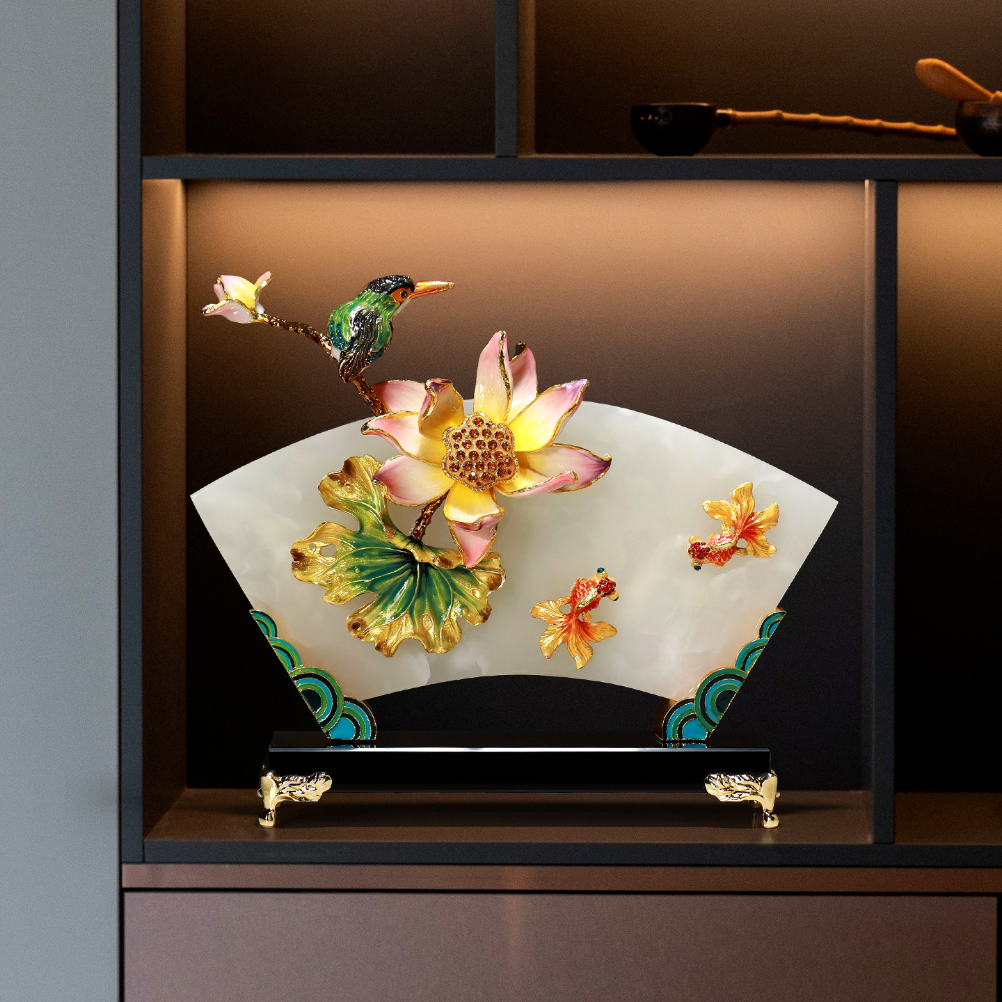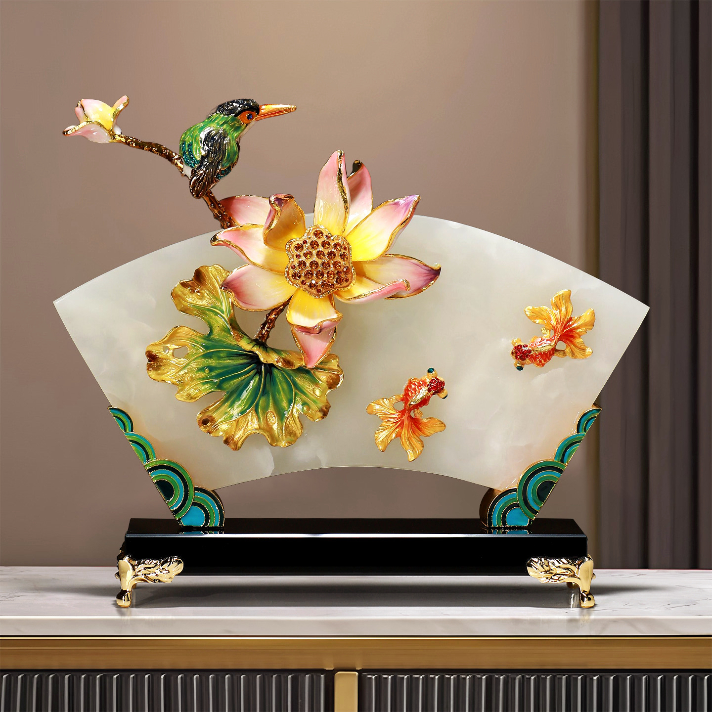 玉石屏风摆件新中式客厅轻奢高档珐琅彩高端大气玄关装饰乔迁礼物