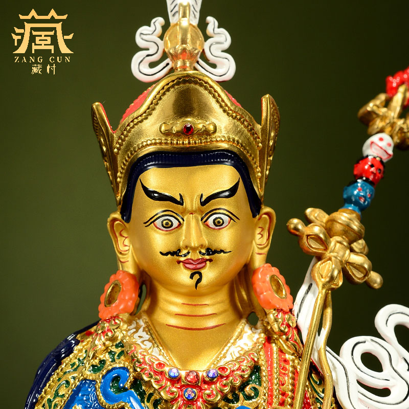 藏村莲花生大士铜像全铜彩绘雕花室内佛事用品用品摆件莲花生大师