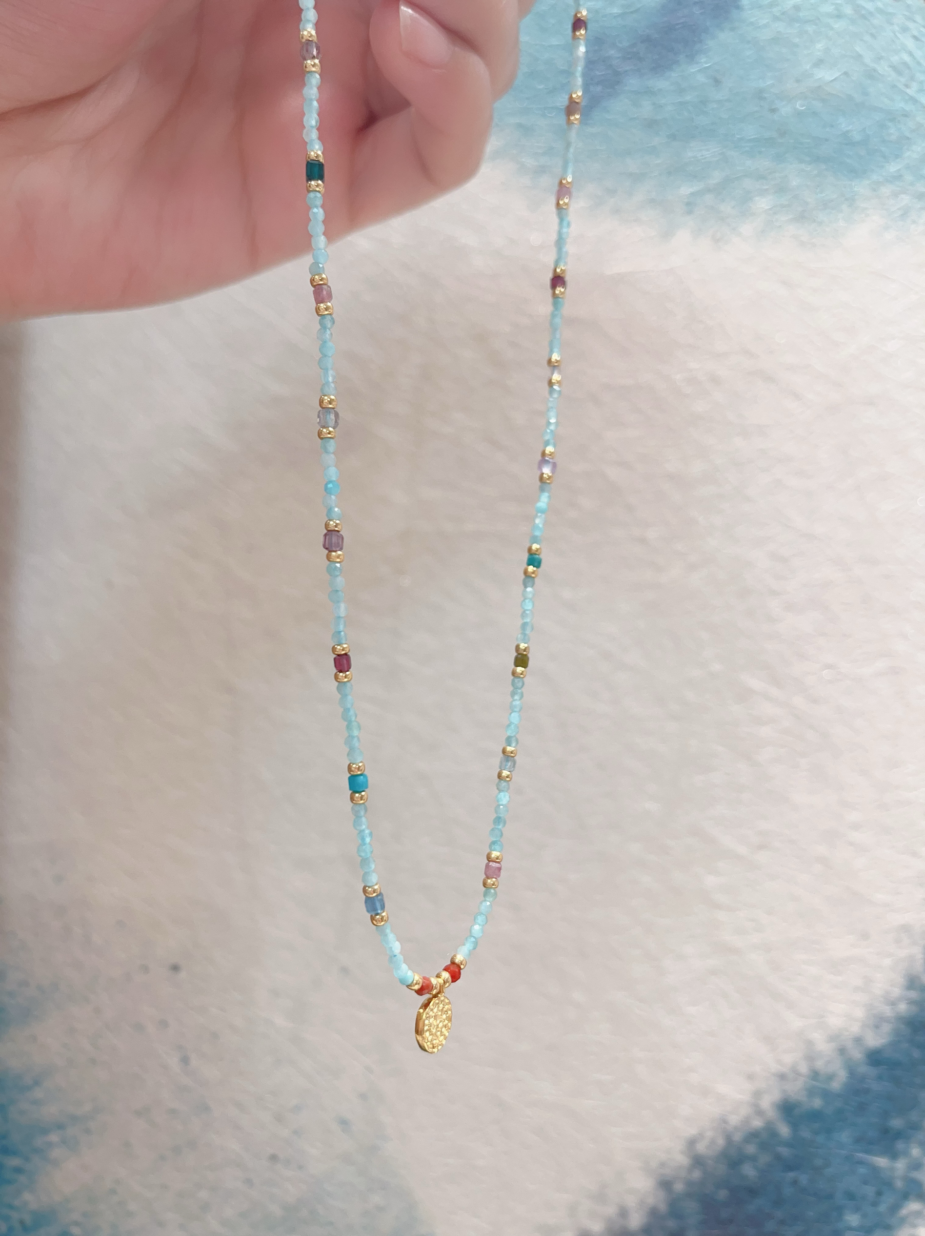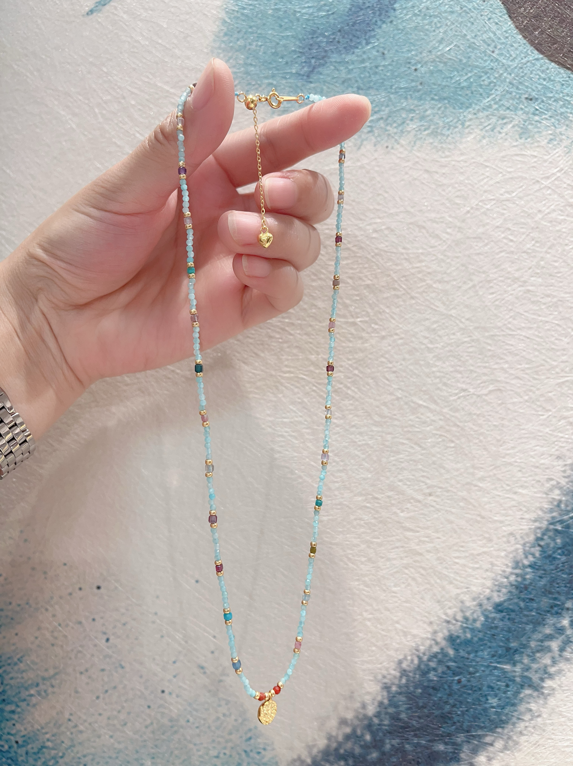 天河石祖母绿碧玺紫水晶硅硼镁铝矿绿松石石榴石小米珠项链女原创
