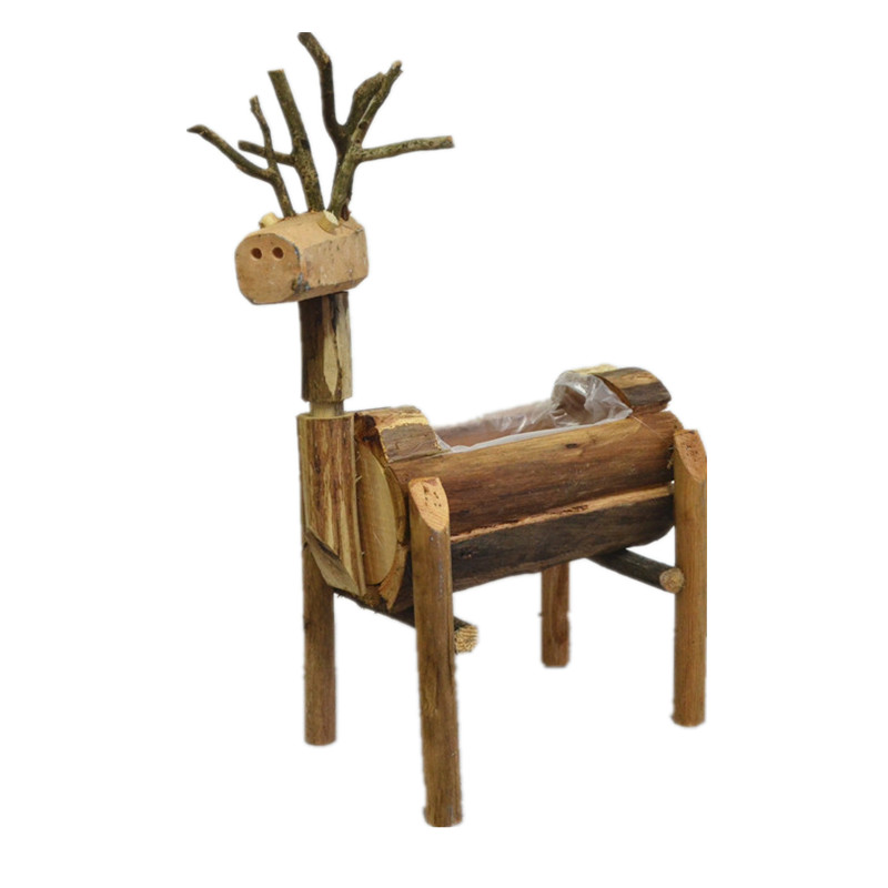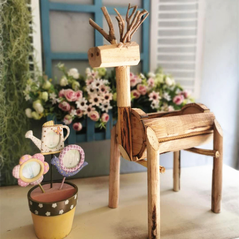 实木小鹿摆件创意多肉花盆庭院阳台花园布置橱窗幼儿园植物角装饰