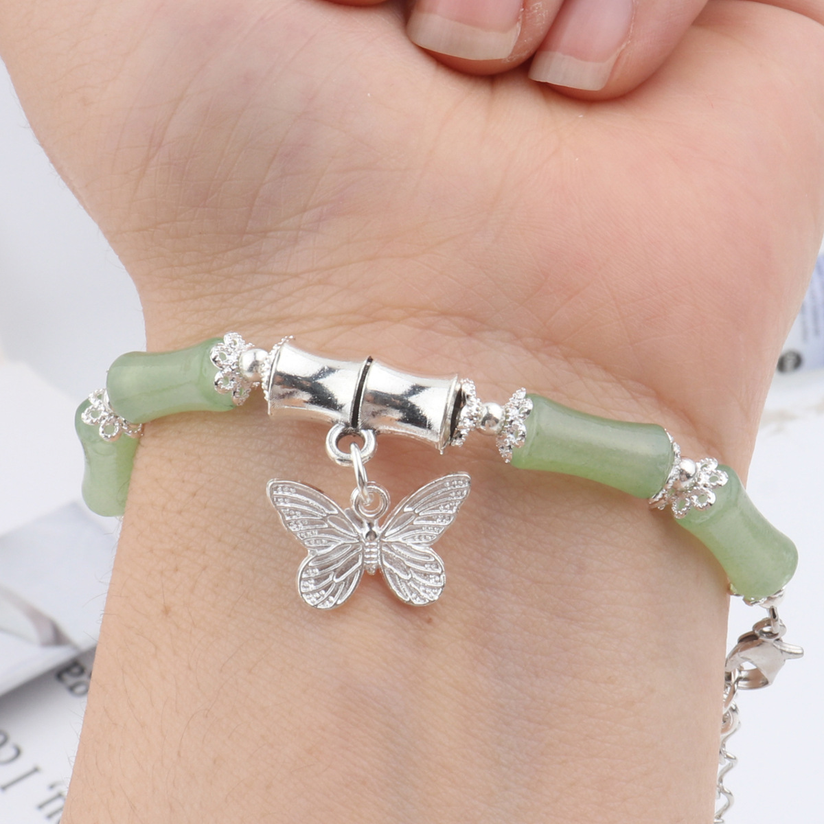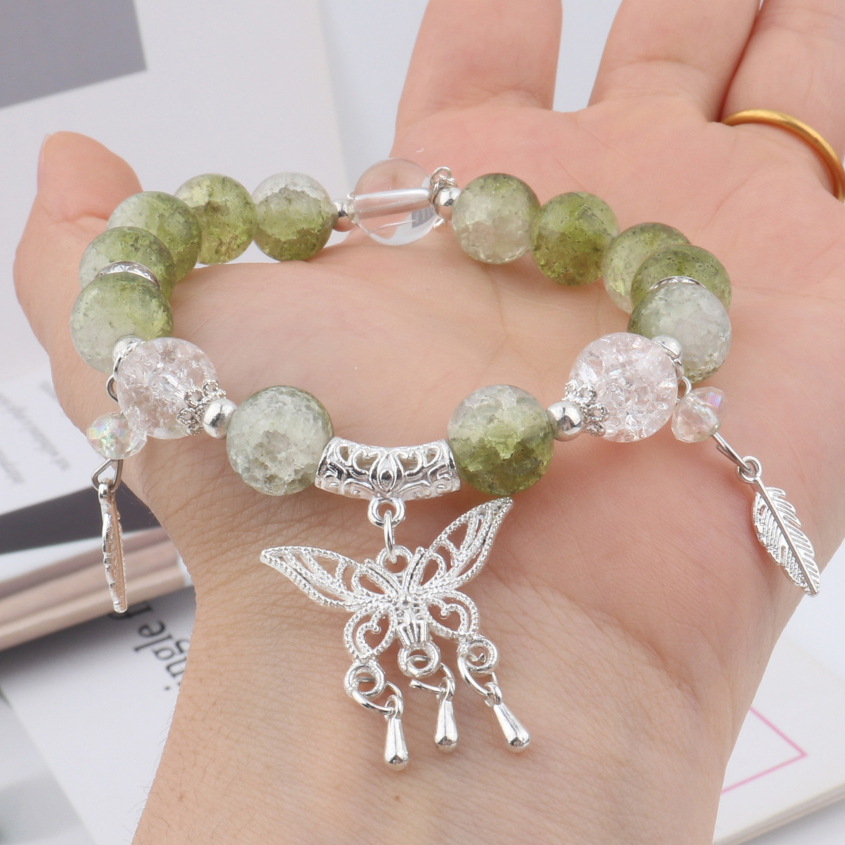 女孩琉璃水晶手链冰透蝴蝶手链古风流苏手链仙女甜美冰裂碎花珠
