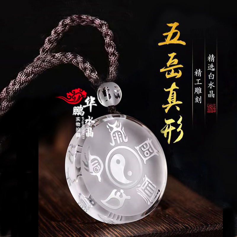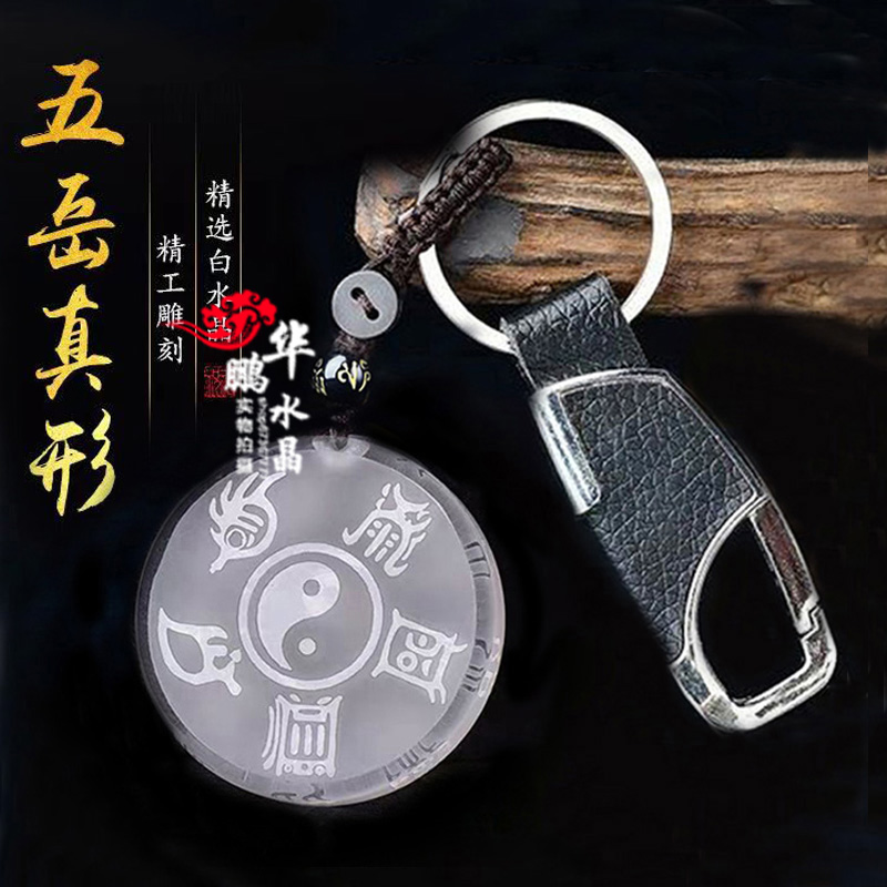 黄水晶白水晶挂件随身男女款护身九字真言五岳真形图吊坠钥匙扣
