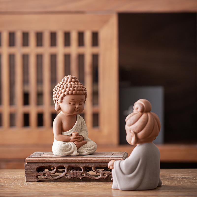 中式紫砂佛像小摆件如来观音地藏博古架创意茶室茶桌佛堂造景装饰