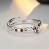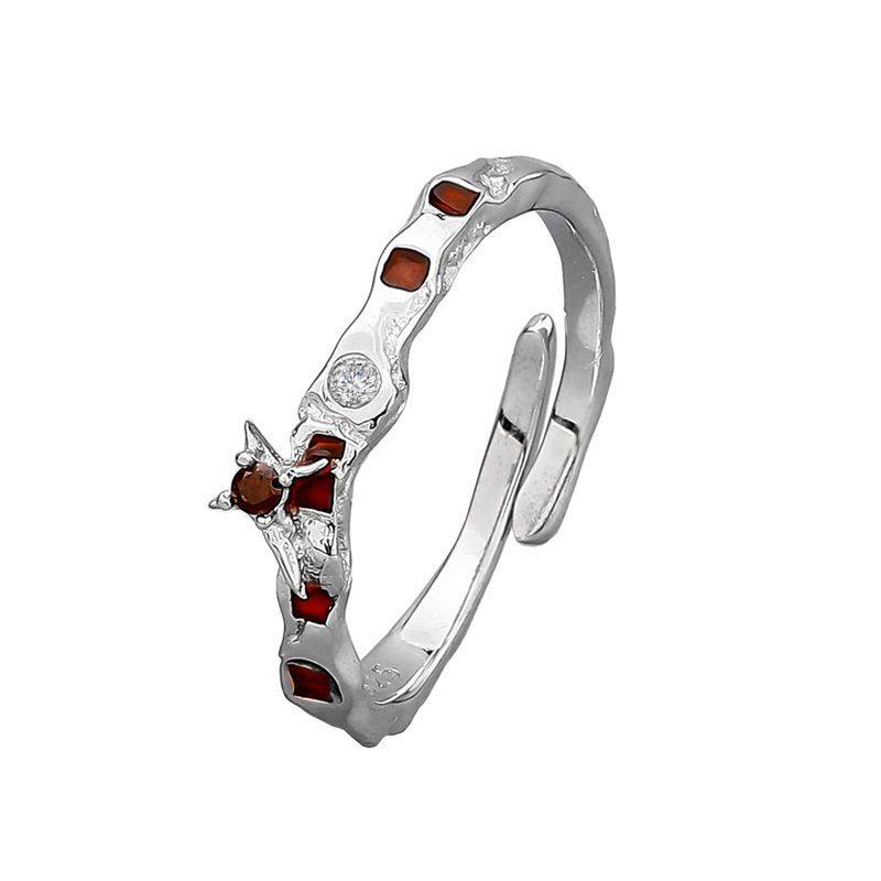 韩版小众设计感S925纯银红色珐琅棋盘格戒指女开口镶钻指环