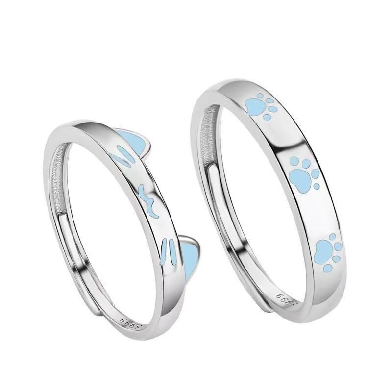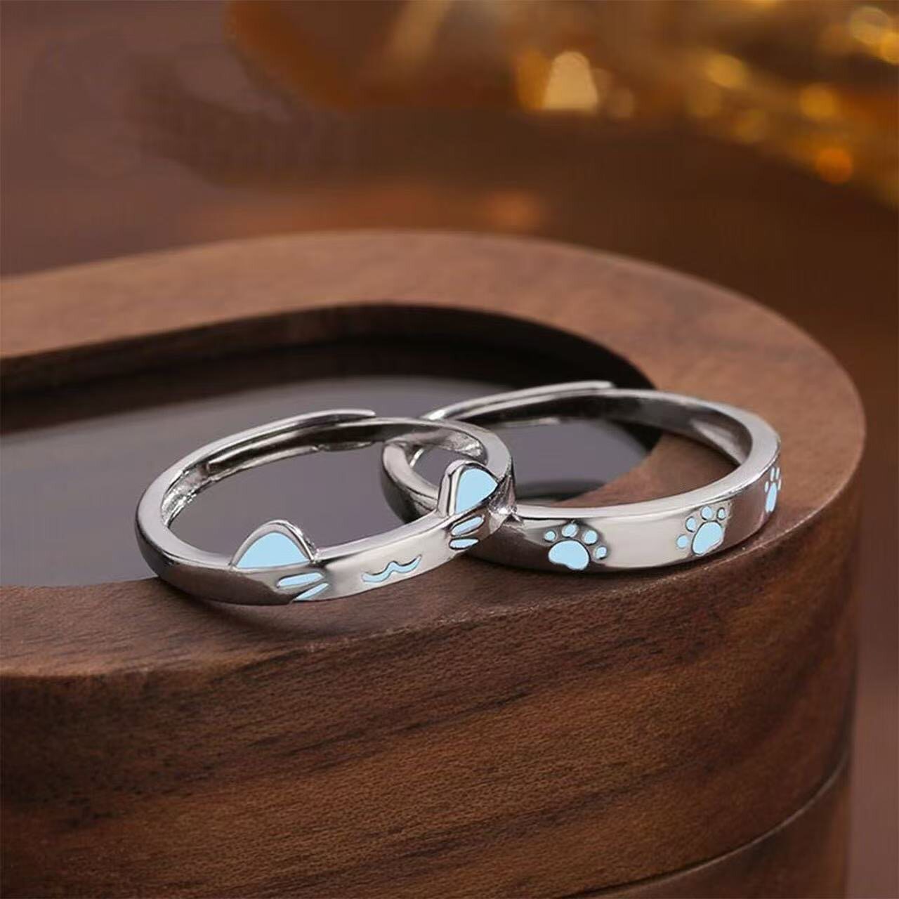 夜光小猫小狗情侣戒指发光小众设计高级感可调节对戒情人节礼物