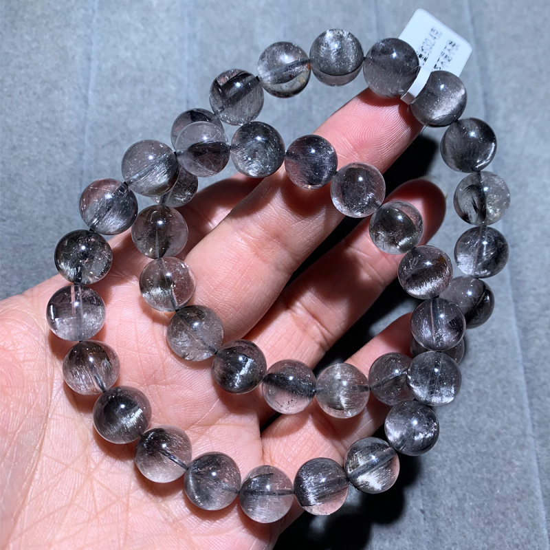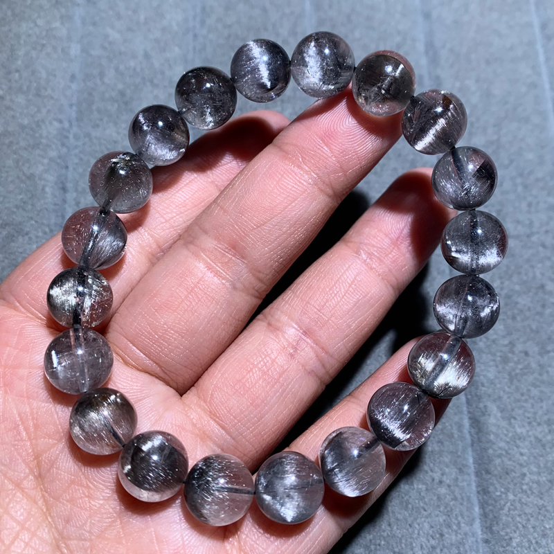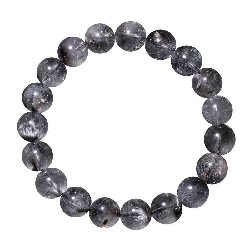 天然黑银钛晶手链黑发晶板猫眼水晶男女单圈手串白银发晶礼物饰品