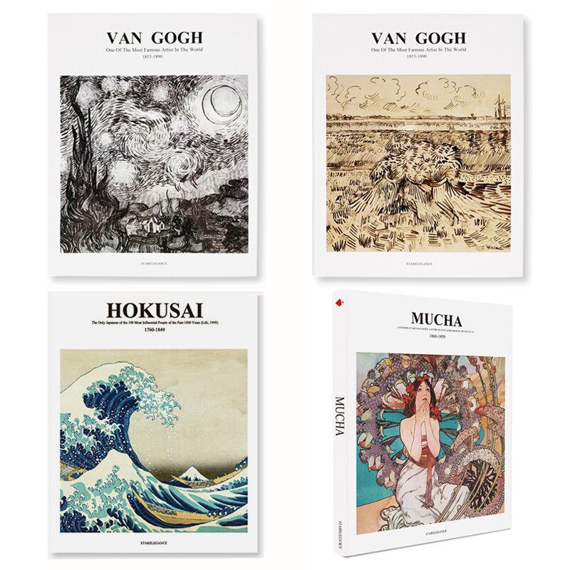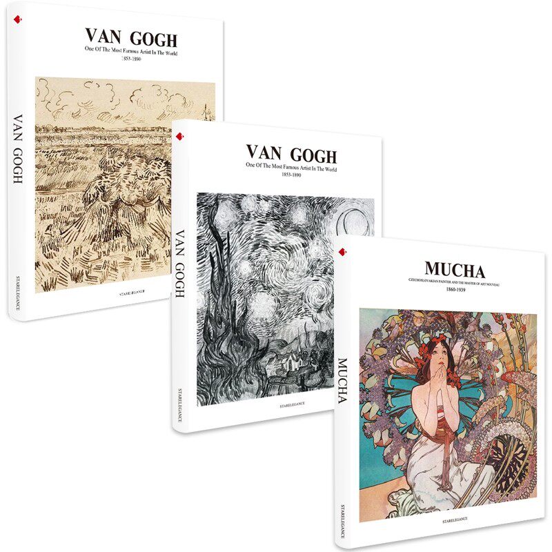 装饰真书摆件梵高手绘穆夏画册样板间书房桌面飘窗软装艺术范陈列