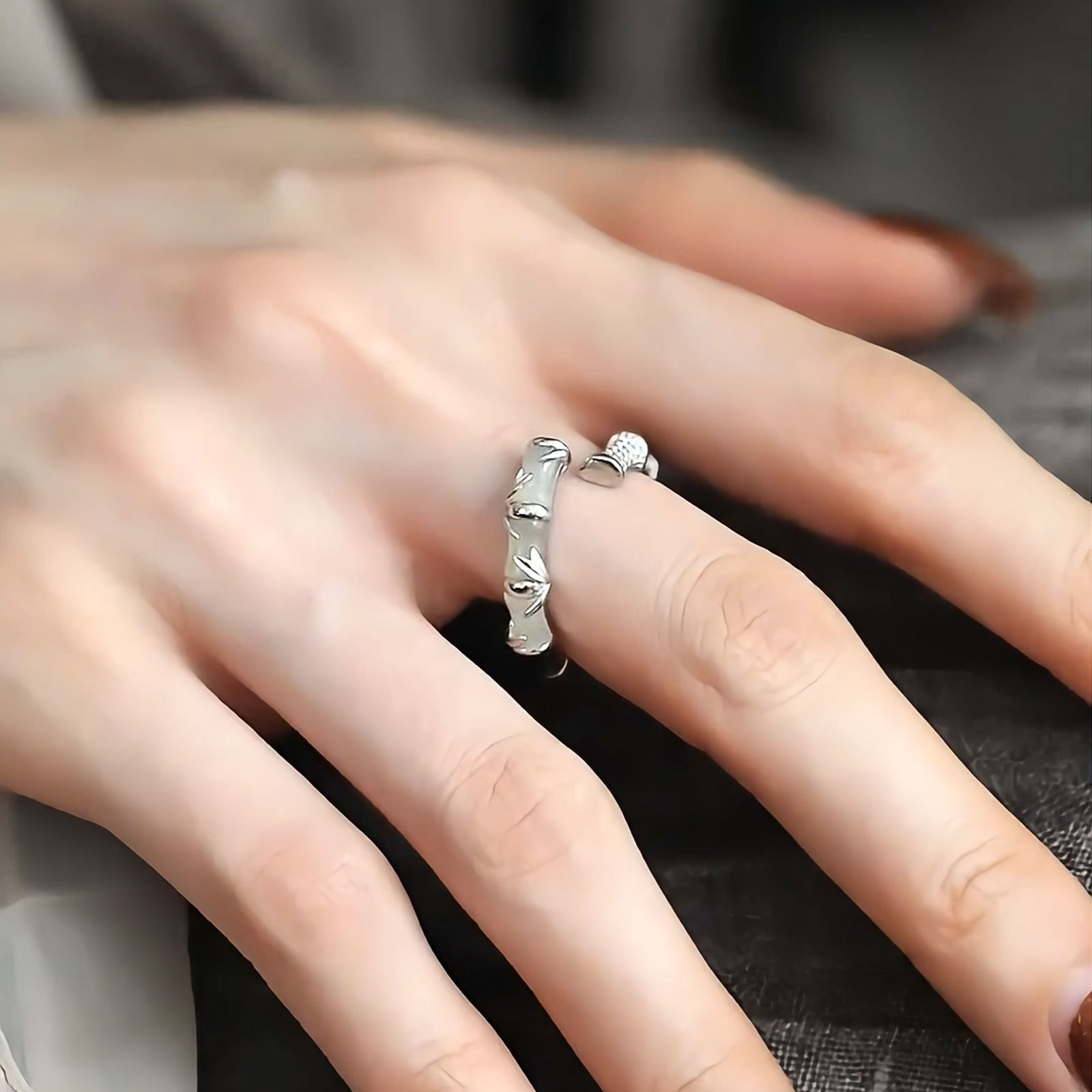 925银白玉髓竹节戒指女新中式国风小众轻奢精致高级感活口食指戒