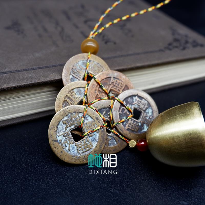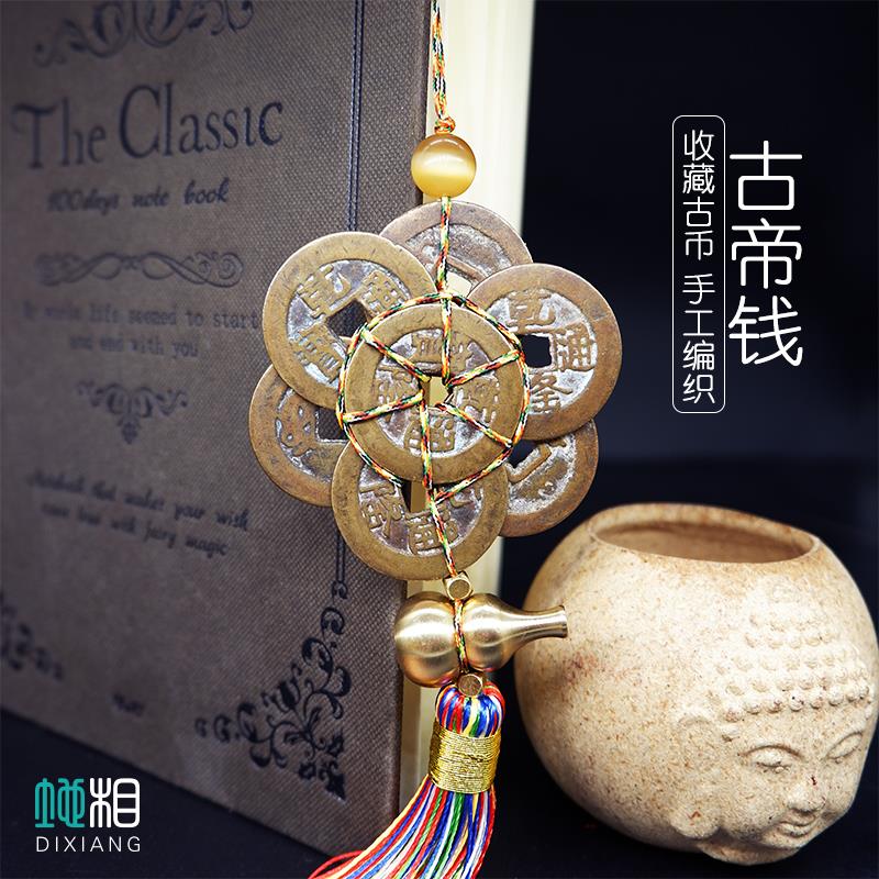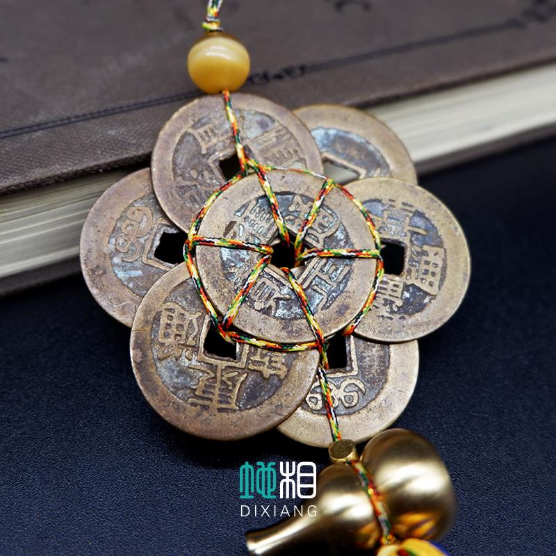 六帝钱八帝钱真品六八铜钱化五黄二黑汽车挂件绳挂饰平安招财随身