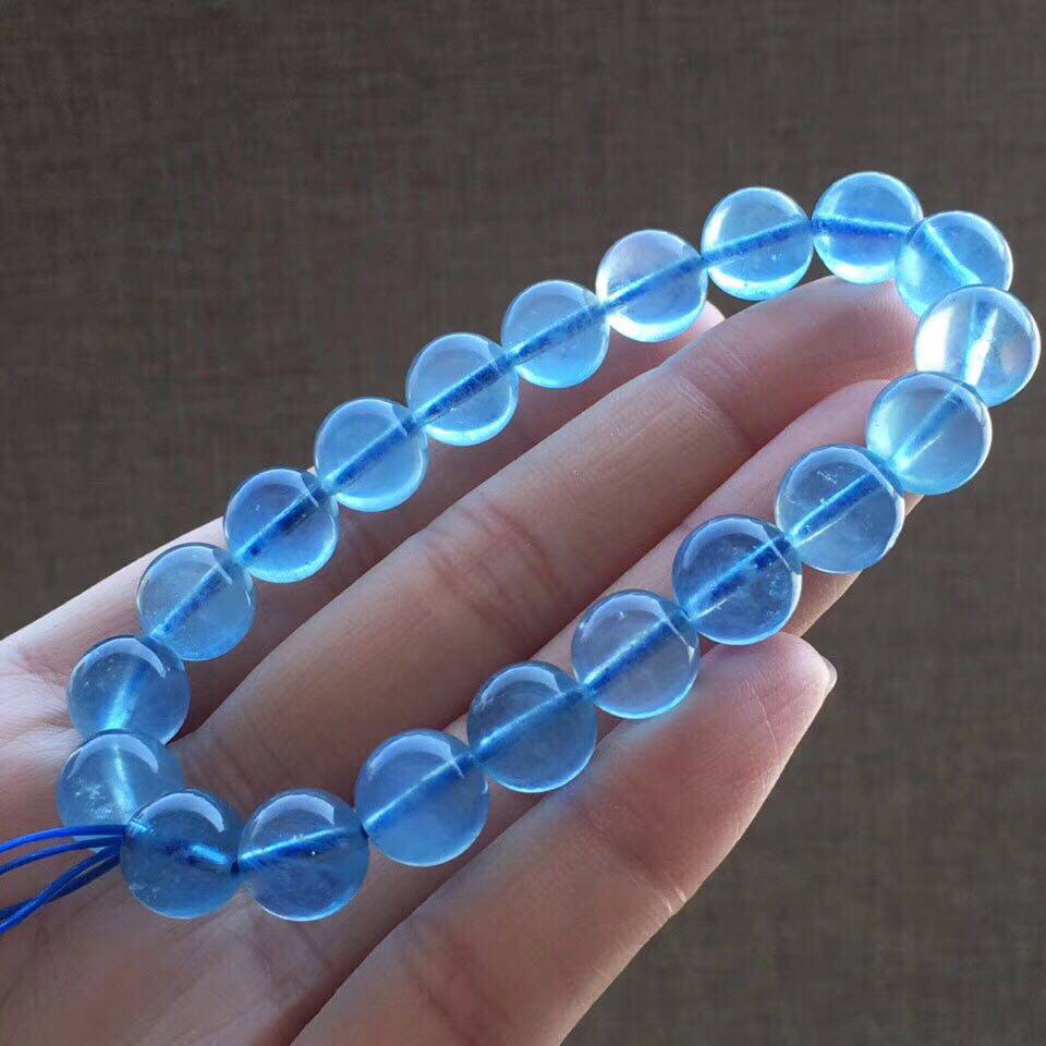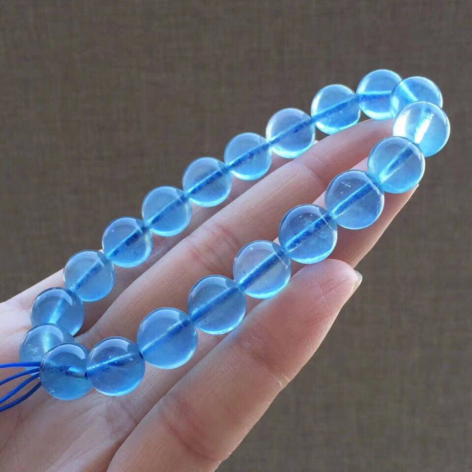 精品10mm天然海蓝宝手链全透体冰蓝色圆珠手串男女水晶实拍图特价