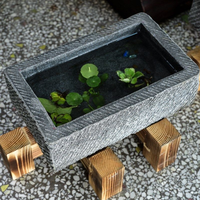 石头花盆摆件庭院布置花园装饰阳台别墅假山流水石头水槽石槽摆件