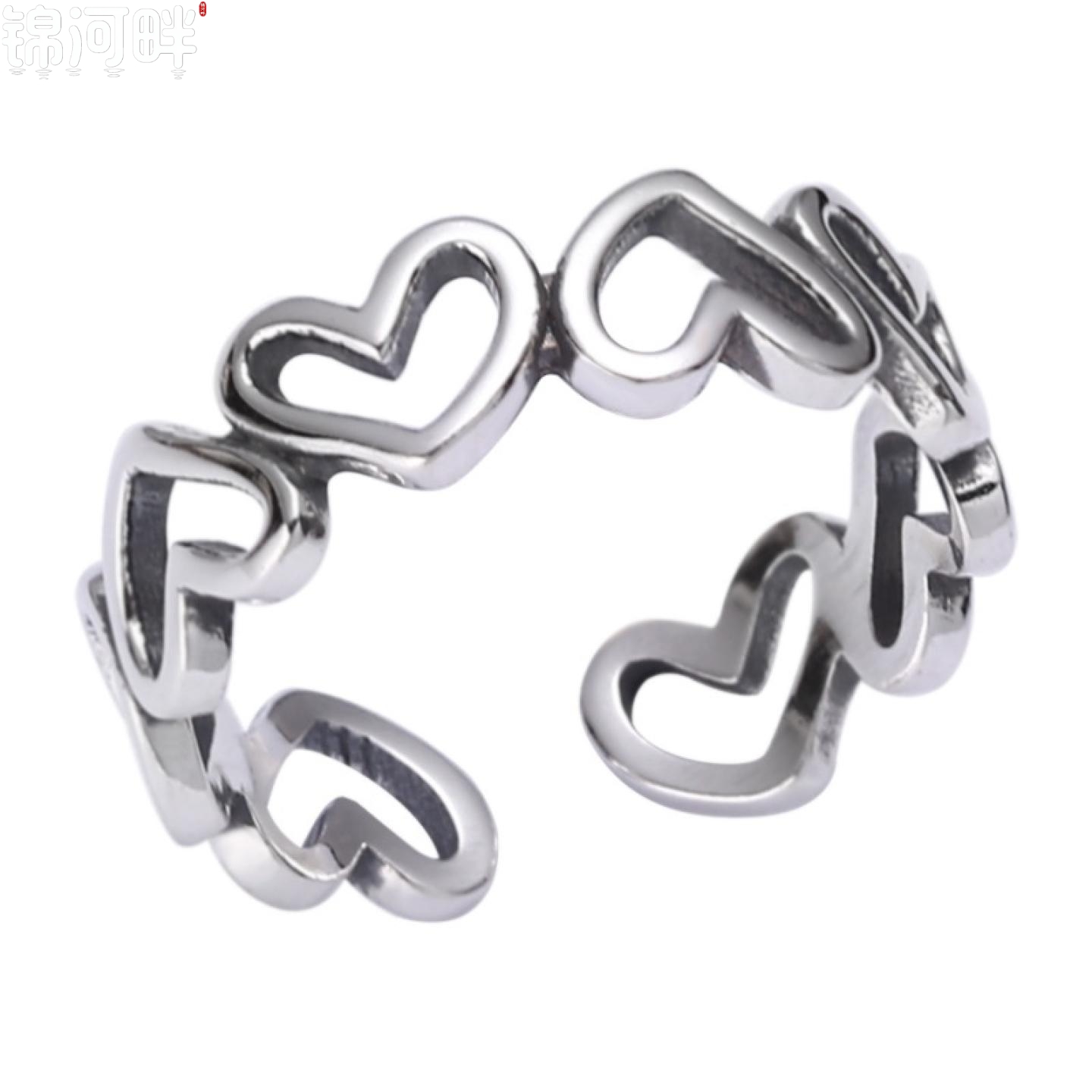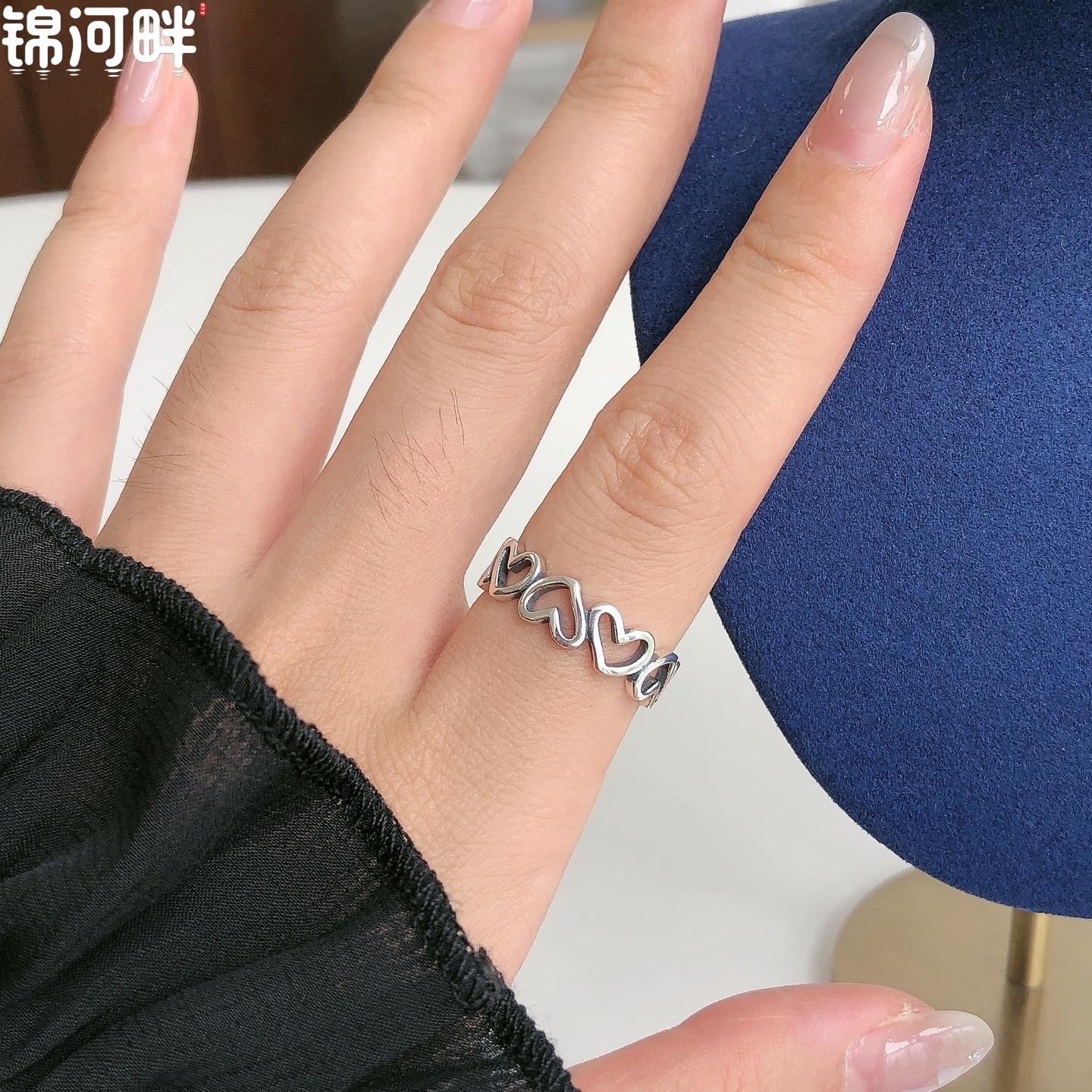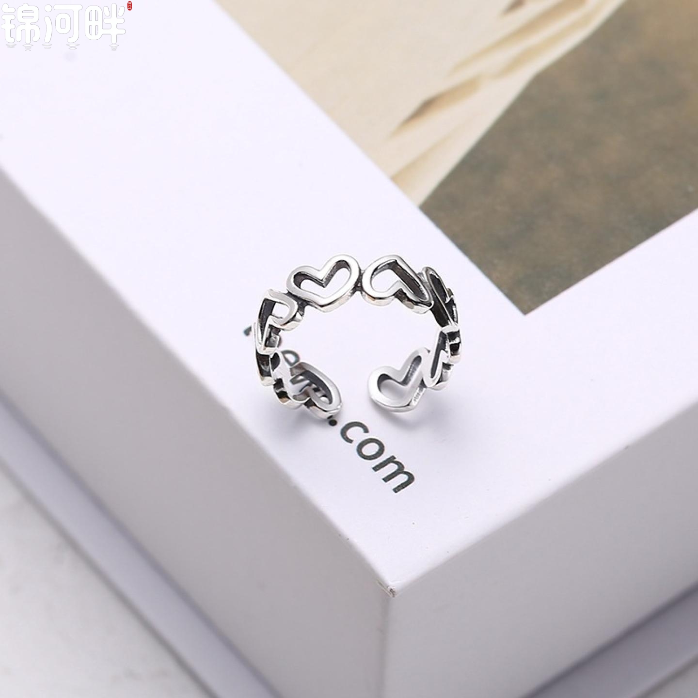 锦河畔 s925纯银爱心开口戒指女食指复古泰银重工冷淡风小众设计