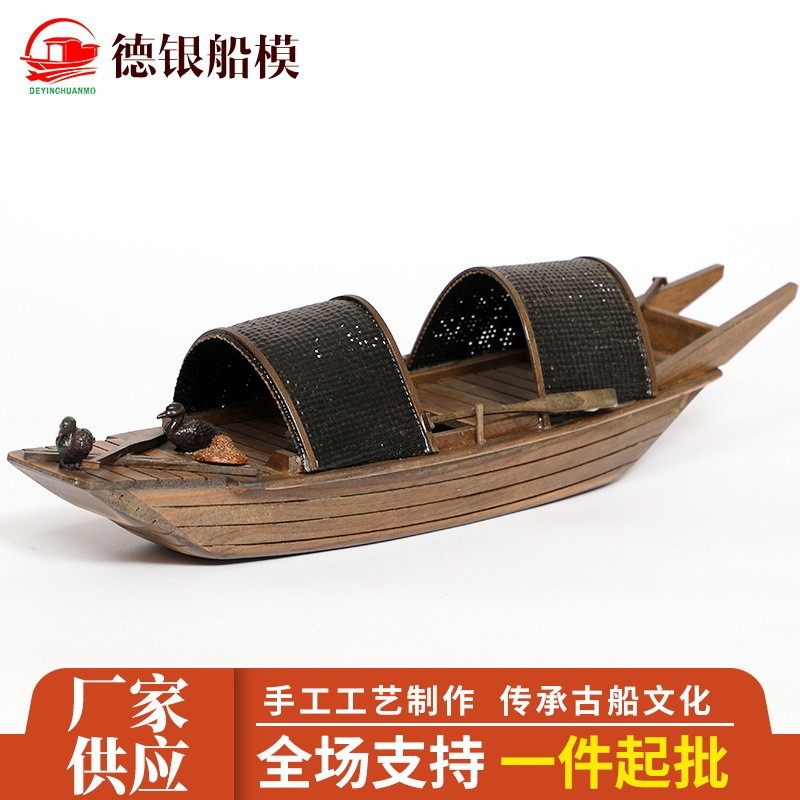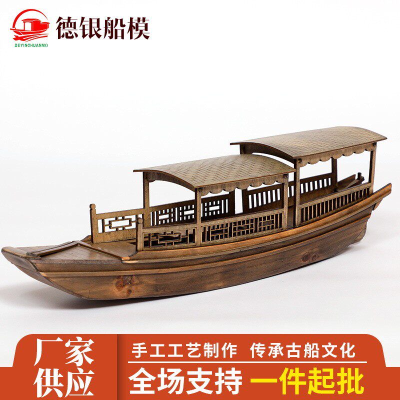 刺杉木手工船模 33x9x31cm 实木仿真模型古典雕刻工业水乡古船