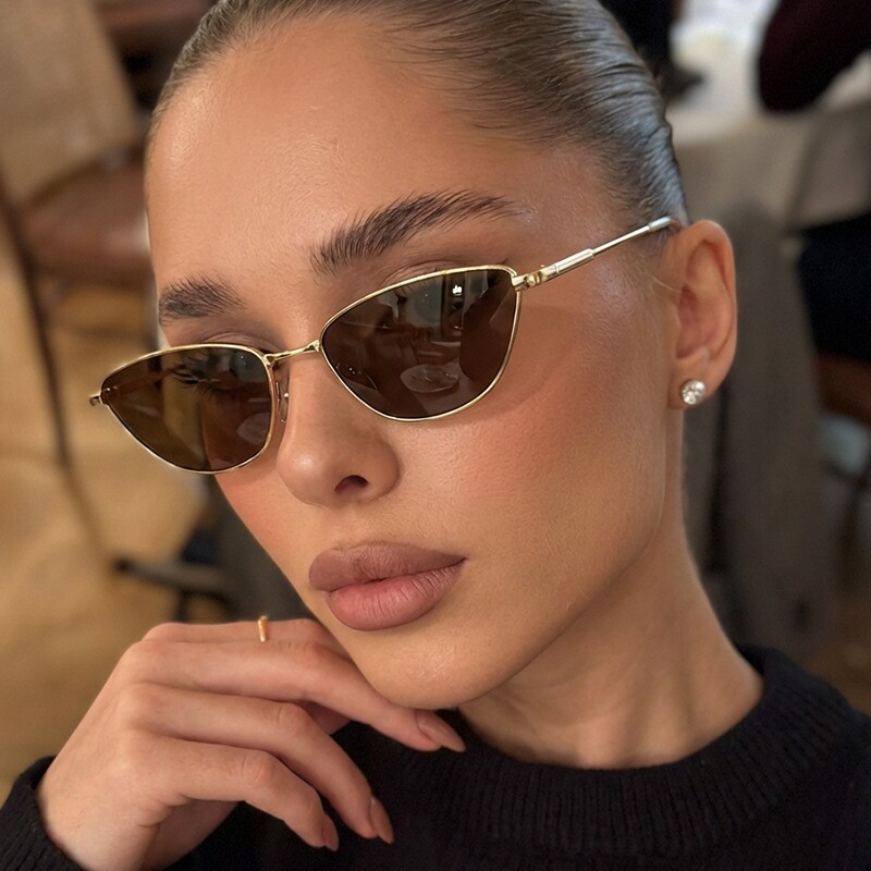 2026年春复古金属框猫眼小框太阳镜红色高级感显脸小防紫外线墨镜