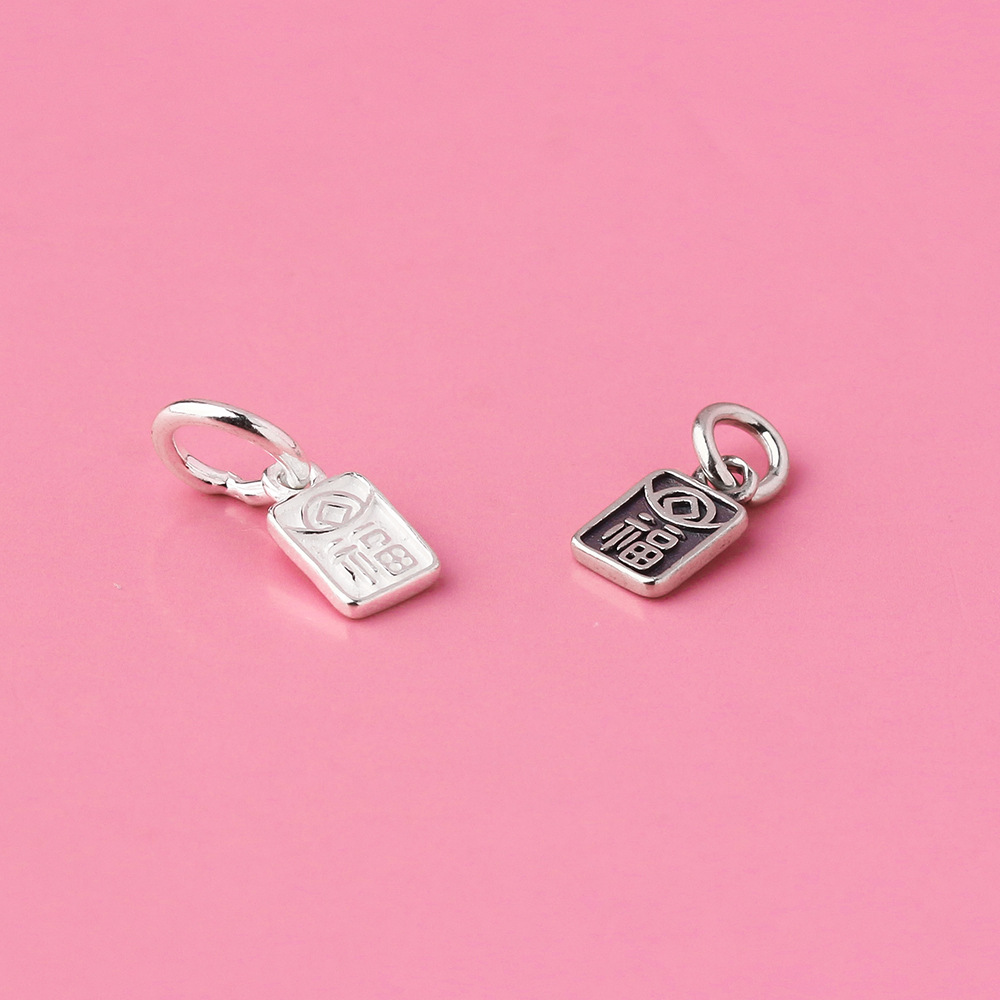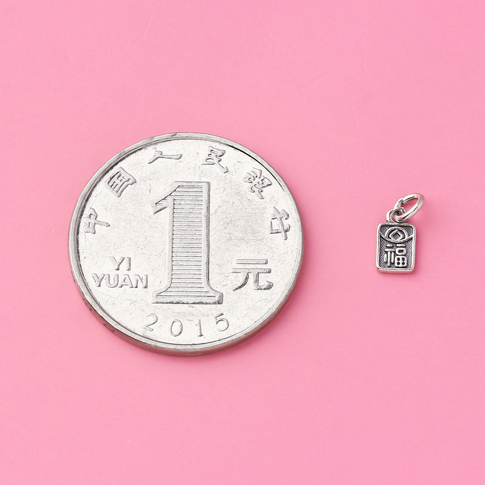 s925纯银吊坠 复古福字小吊坠 手链项链diy编绳手链挂坠配饰