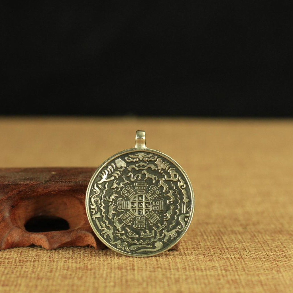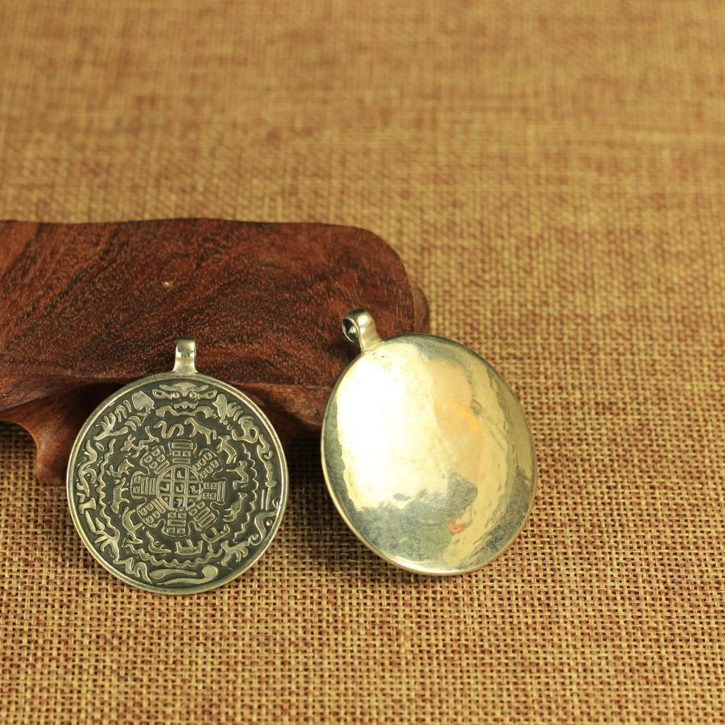 适用手工九宫八卦牌吊坠 纯铜 diy配件 腰牌 泰银手链挂件