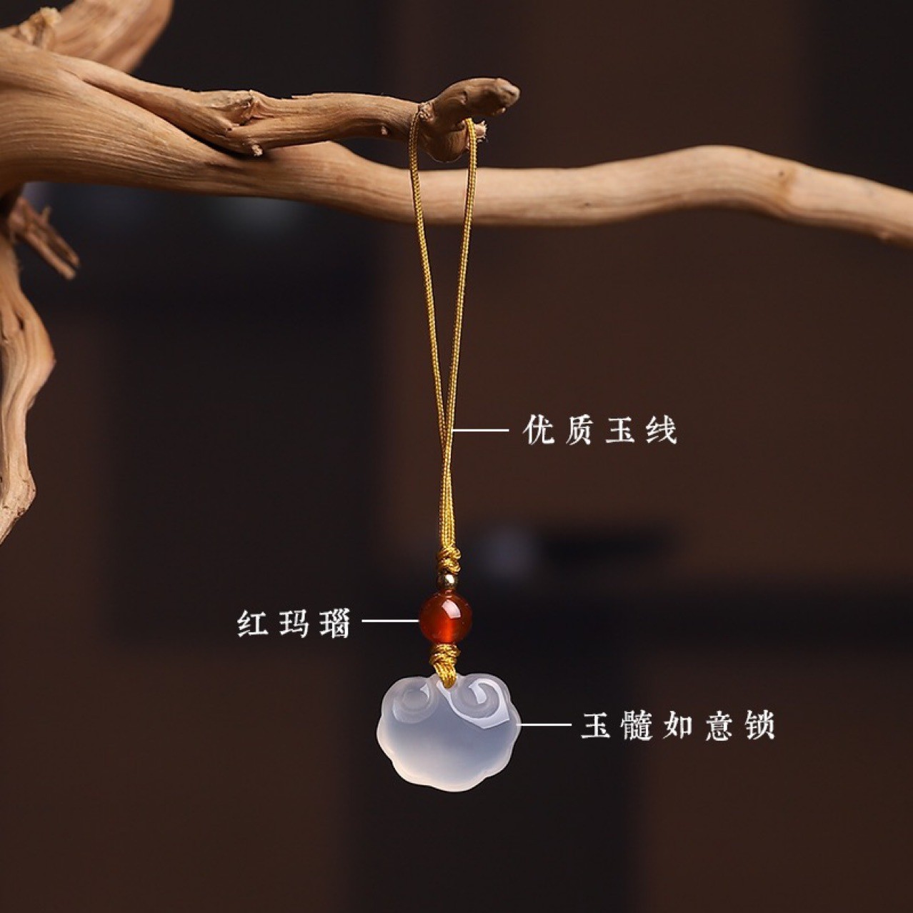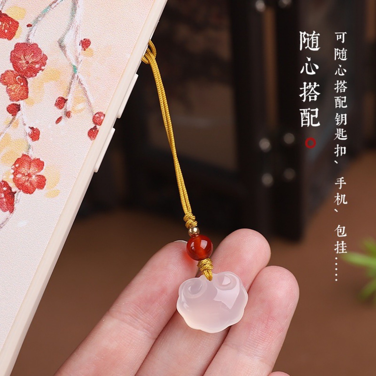 延禧天然玛瑙玉髓平安锁吊坠儿童玉石玉坠手机挂件白玉玉佩饰品