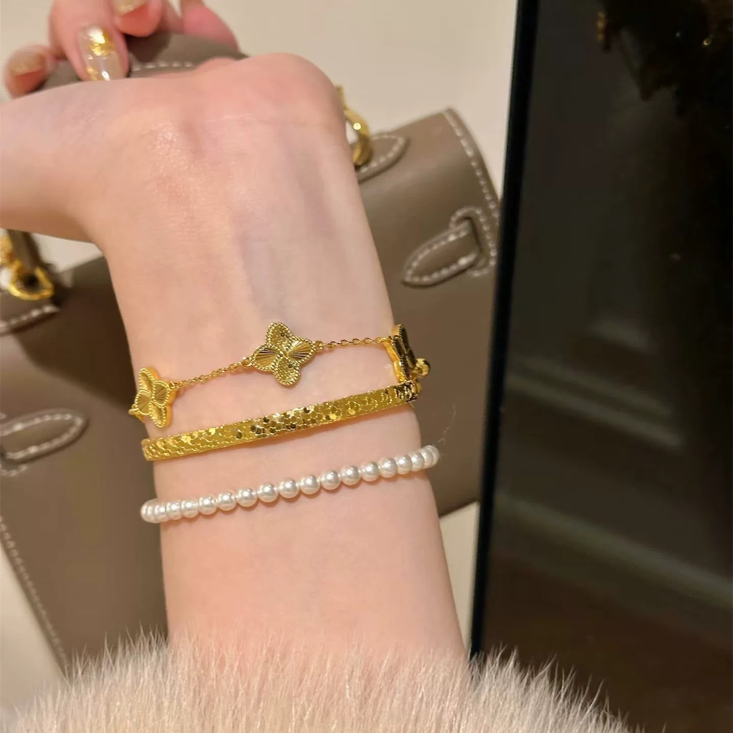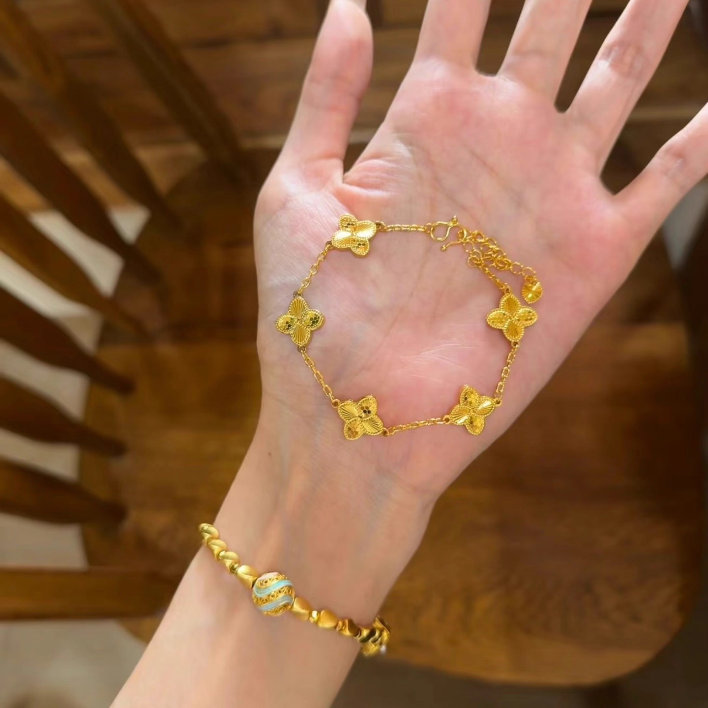 卡纯诗金店同款沙金仿真金龙鳞幸运草手链女高级感手串送女友轻奢