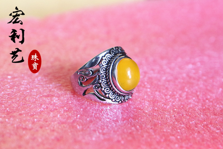 宏利925纯银戒指空托 定做琥珀戒指托宝石复古镶嵌女戒托8*10银托