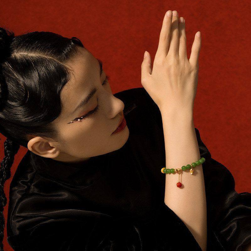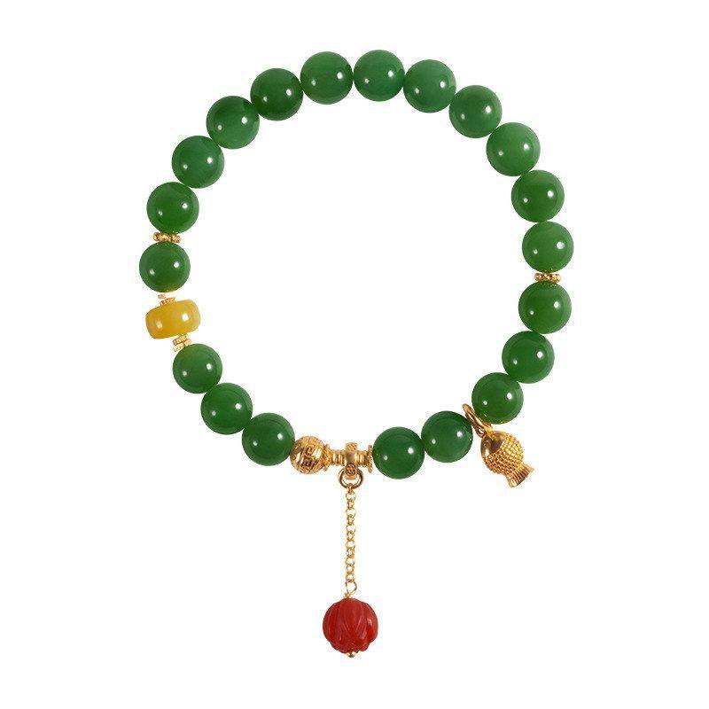 蜜蜡碧玉金S925和田银镀圆珠手链天然18K8mm南红手串现货女款工厂