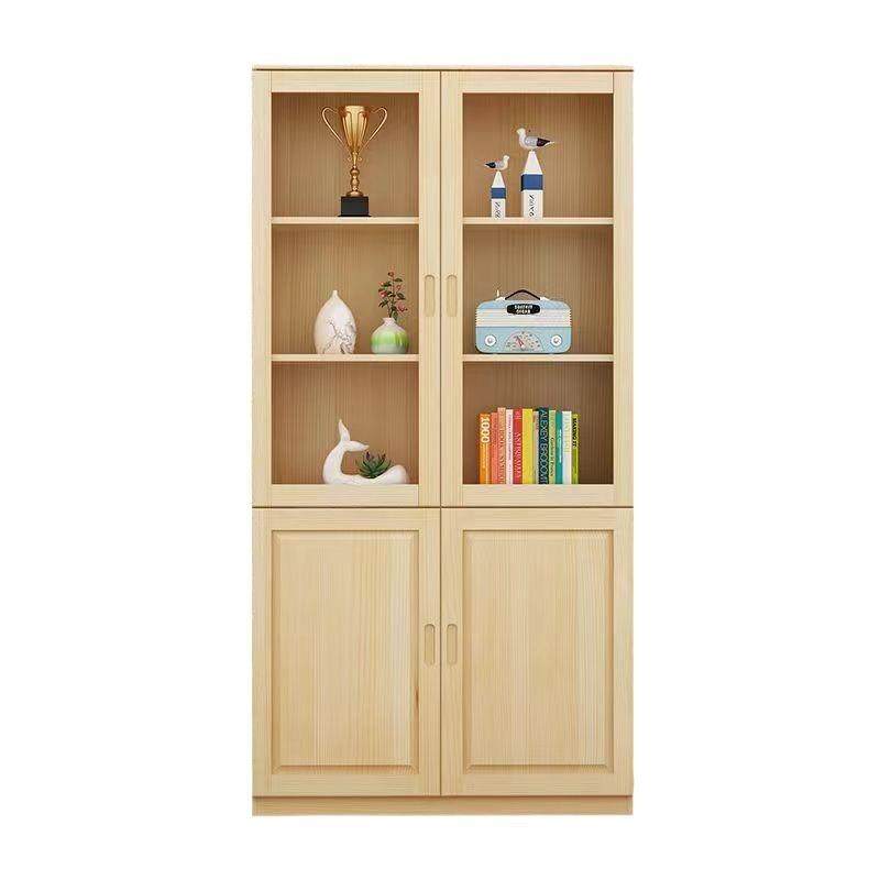 实木书柜现代简约带玻璃门收纳文件展示柜家用学生组合储物书橱