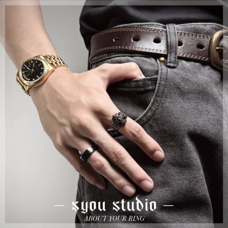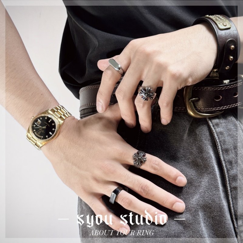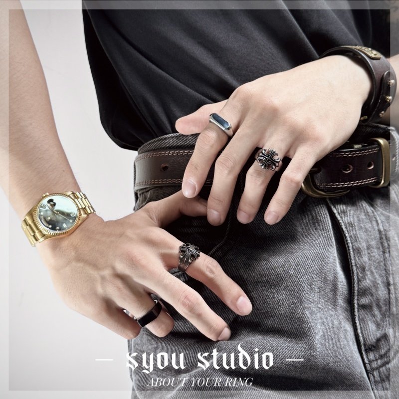 Syou做旧十字架钛钢戒指原创小众设计裂痕男士大码复古指环朋克