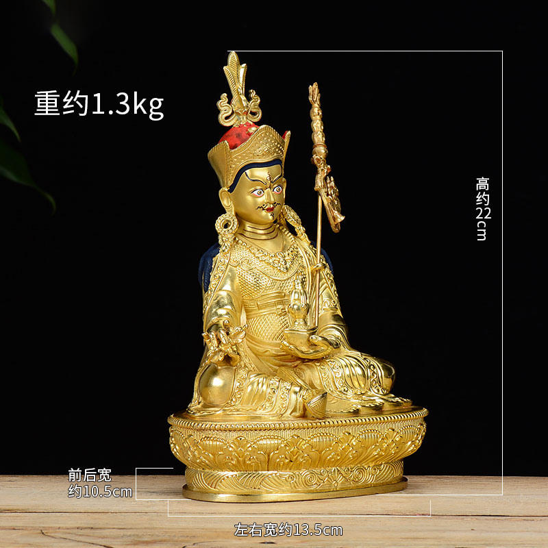 莲花生大士铜像摆件室内家用铜全鎏金7寸现代莲花生大师