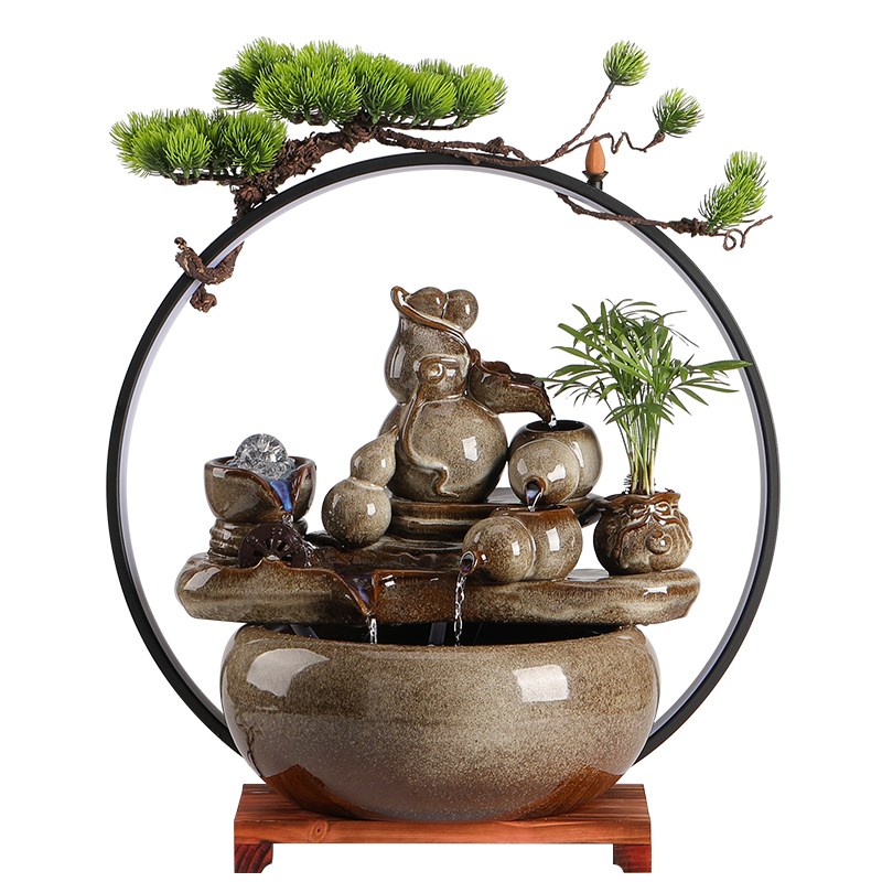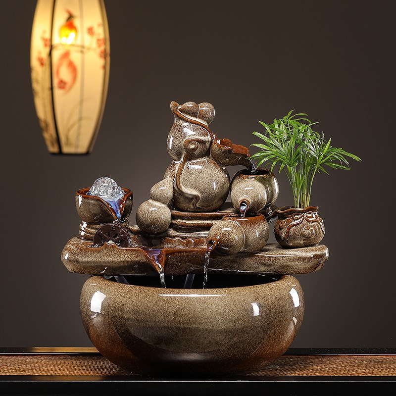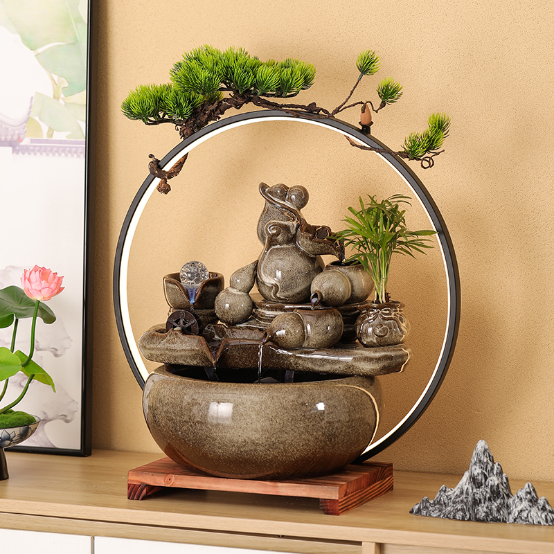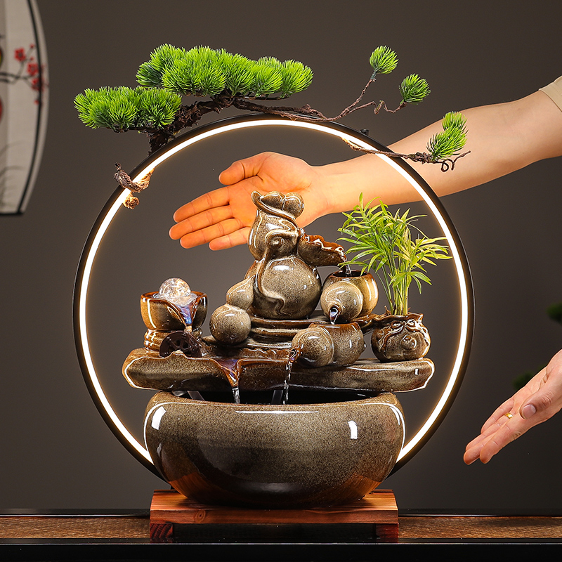 陶瓷招财流水生财摆件循环水办公室桌面装饰家用客厅养鱼开业送礼