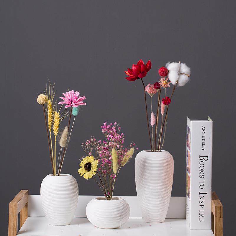 白色拉丝创意陶瓷花瓶北欧办公室家居装饰工艺品摆件简约花插花器
