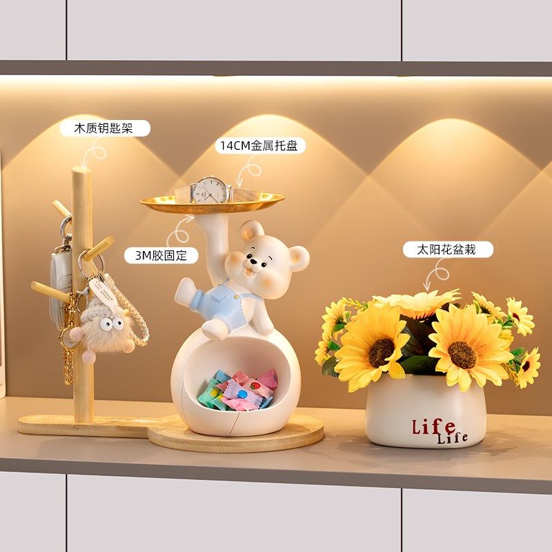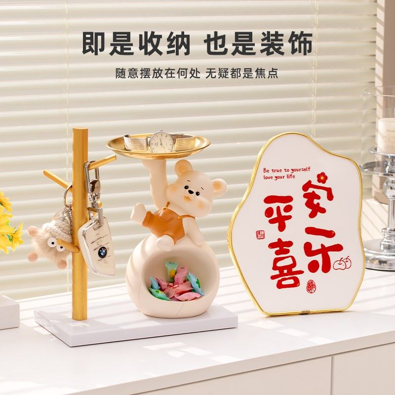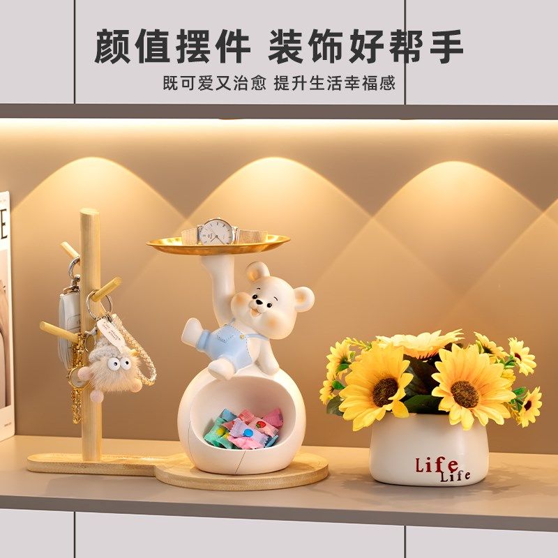 呆萌熊入户钥匙收纳玄关摆件客厅装饰高级感置物架新房子搬家礼物