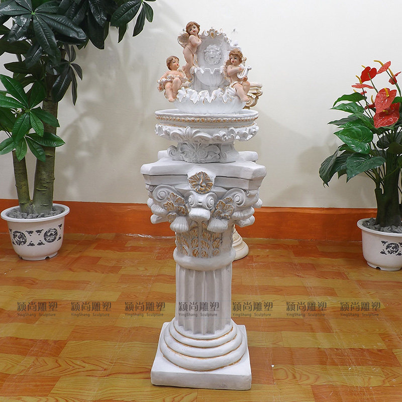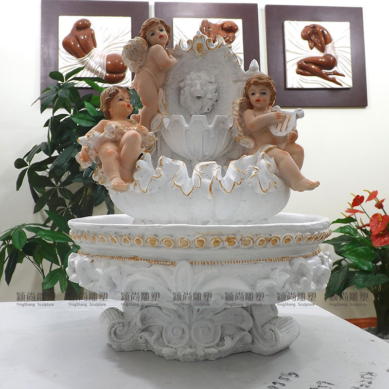 欧式家居装饰品小天使五彩流水喷泉工艺树指摆件加湿增氧器白色款