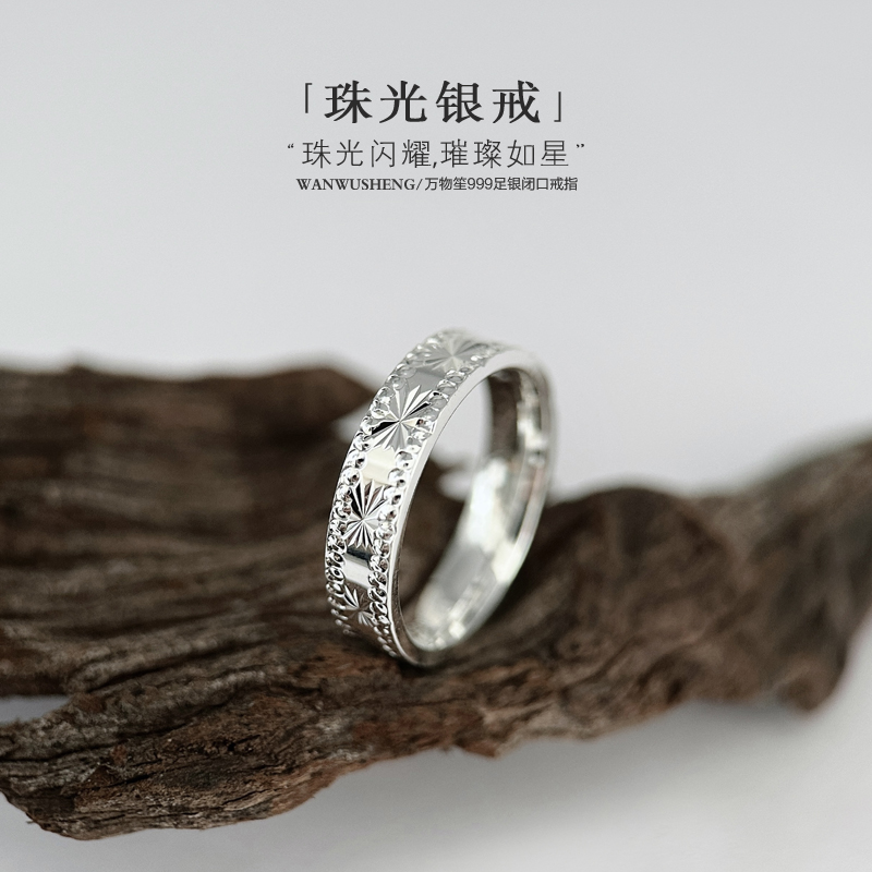 万物笙[珠光]足银999实心闭口戒指女款满天星轻奢实心素圈食指戒