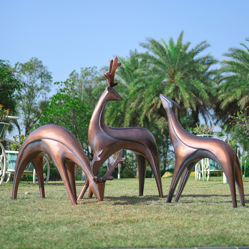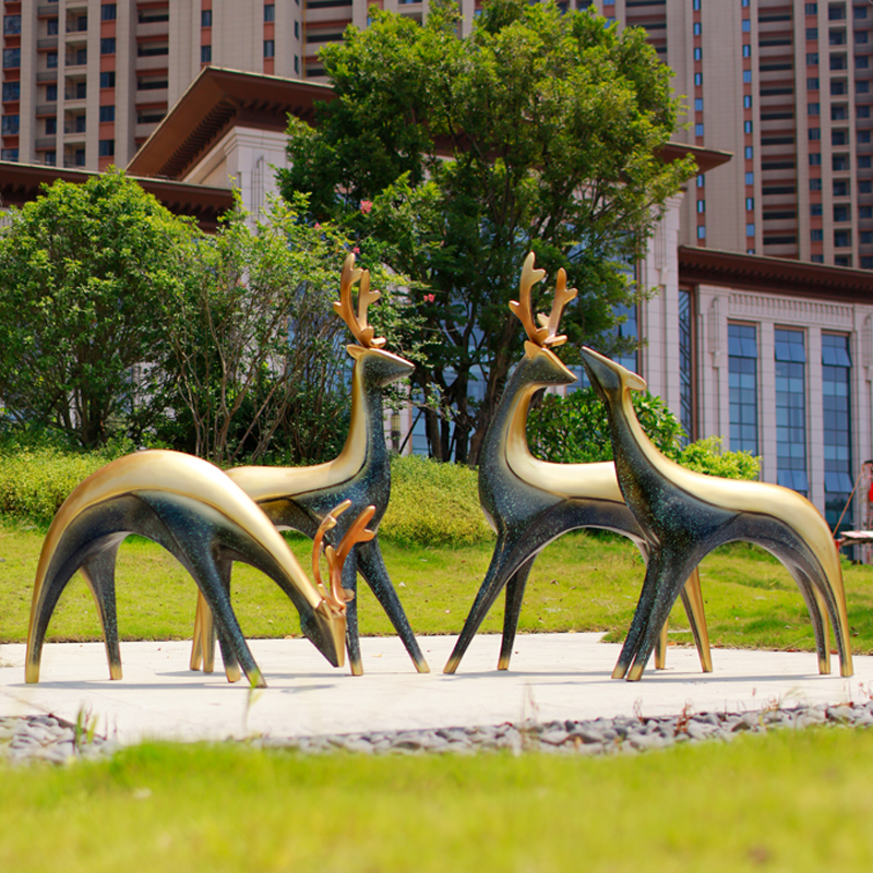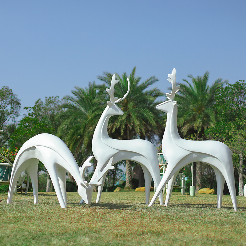 户外鹿雕塑玻璃钢园林景观装饰小品现代草坪公园造景梅花鹿摆件