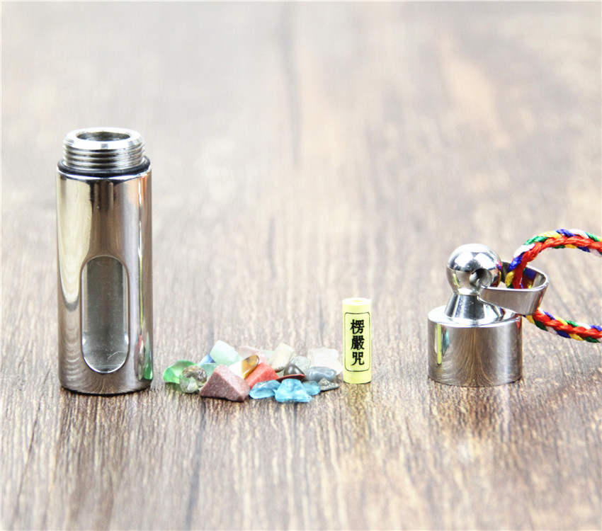 结缘透明钛钢嘎乌盒楞严咒吊坠挂件空心可打开装朱砂舍利子甘露丸
