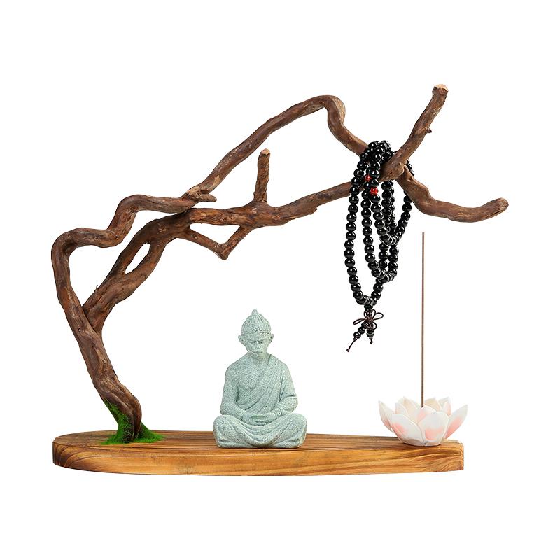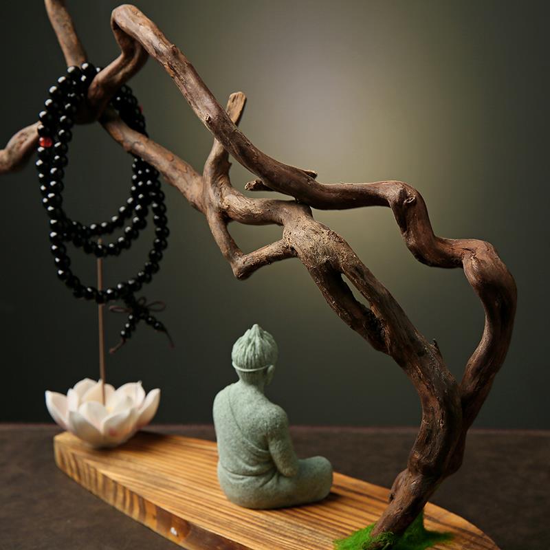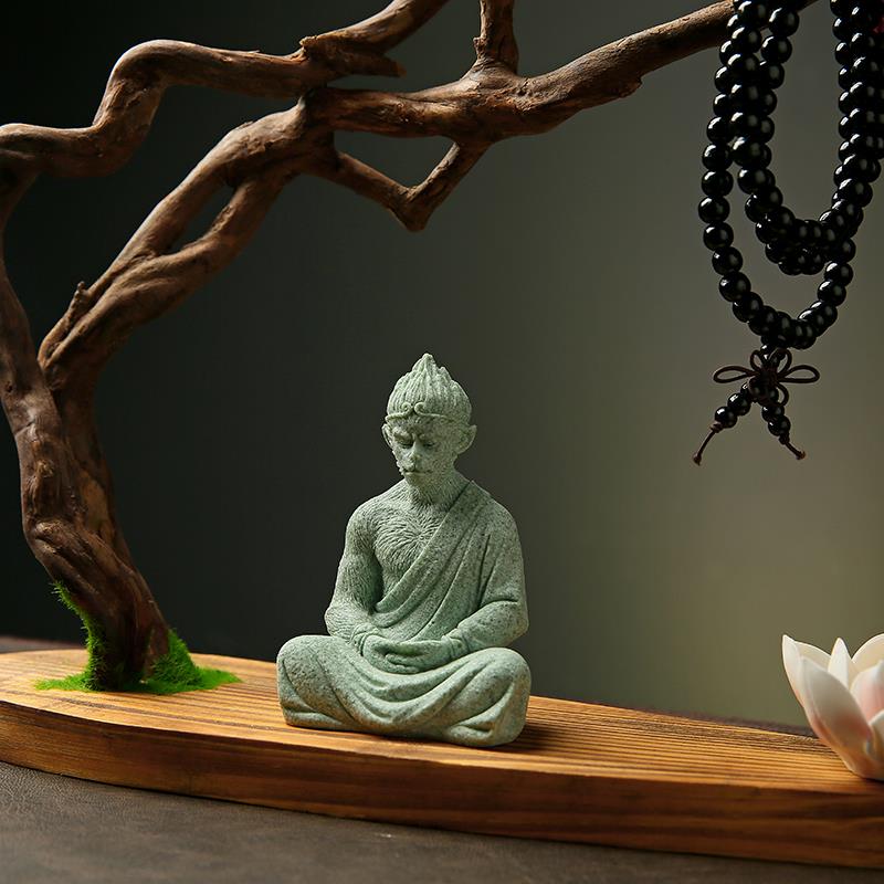 天然实木根雕摆件创意家居客厅装饰工艺品风化木树根禅意悟空底座