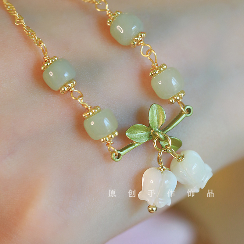 清冷感铃兰花手链女款2025新款轻奢小众精致甜美仿和田玉手串女款