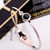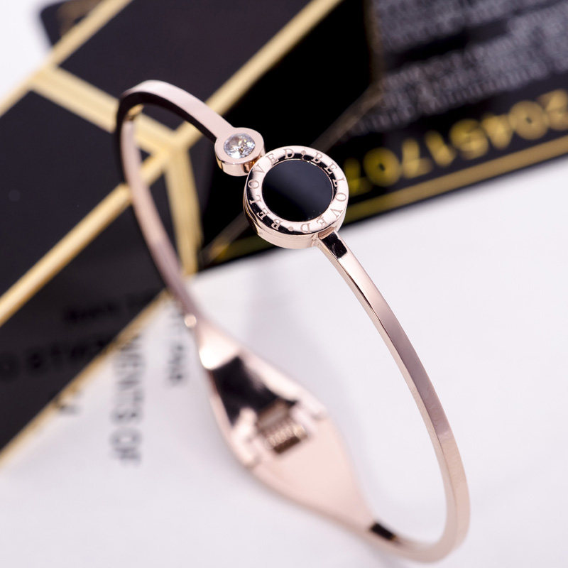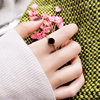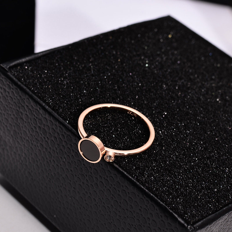 欧美镀18k玫瑰金个性黑色圆形带钻戒指女款食指环钛钢戒子配饰品