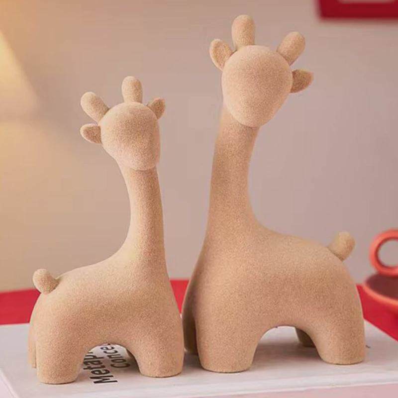 婚庆植绒长颈鹿树脂摆件桌摆红色喜庆长颈鹿植绒工艺品婚房装饰