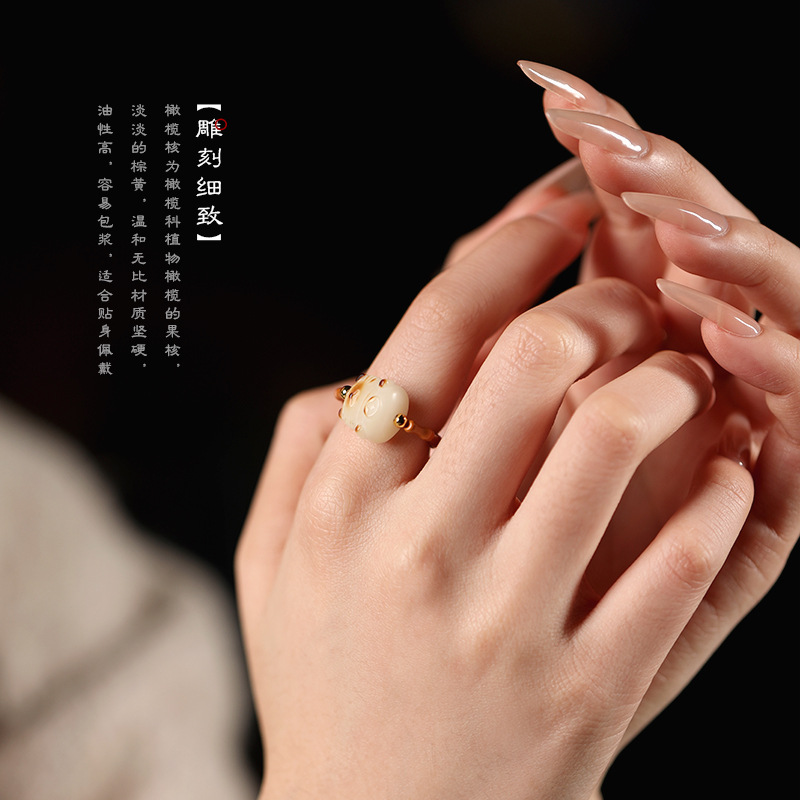 【杭州官方正品】橄榄核竹节戒指女款文玩指环新中式国风配饰礼物