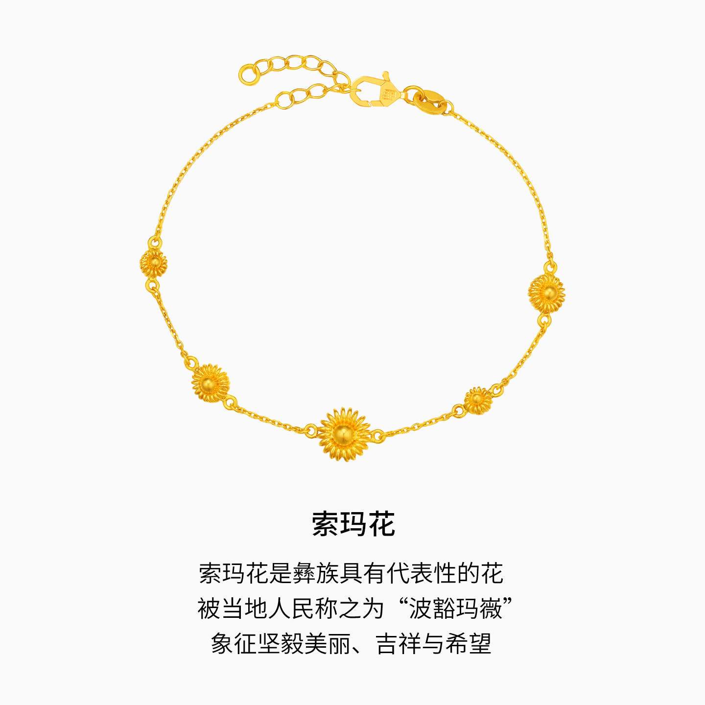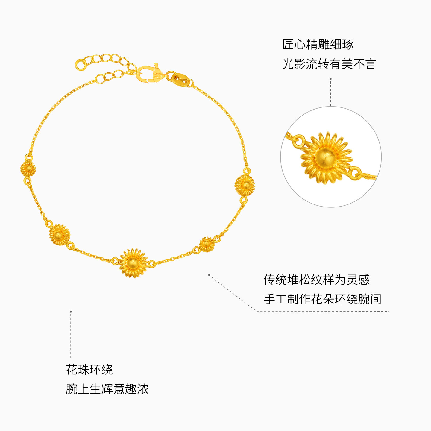 潮宏基非遗花丝圆满黄金手链足金手绳5G金索玛花叠戴母亲节 卟